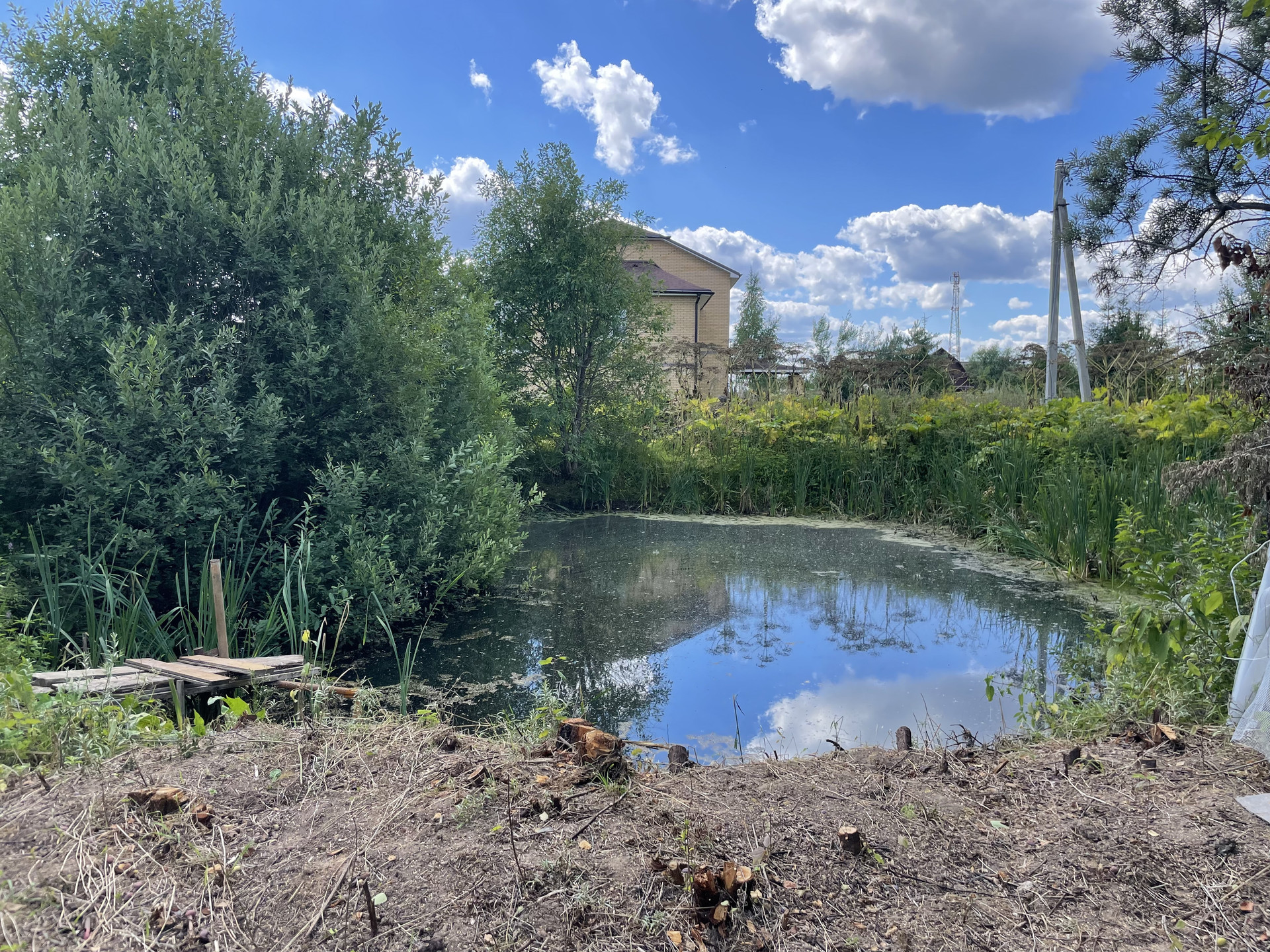 Много сортовой малины, плодовых деревьев, кустарников. За калиткой пруд с собственным выходом.