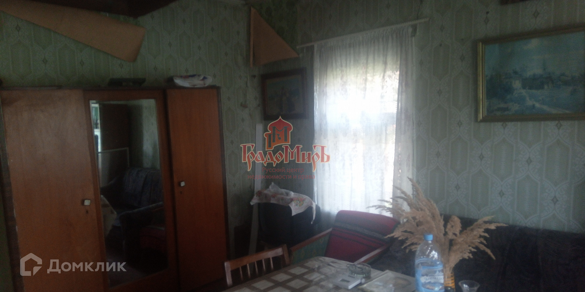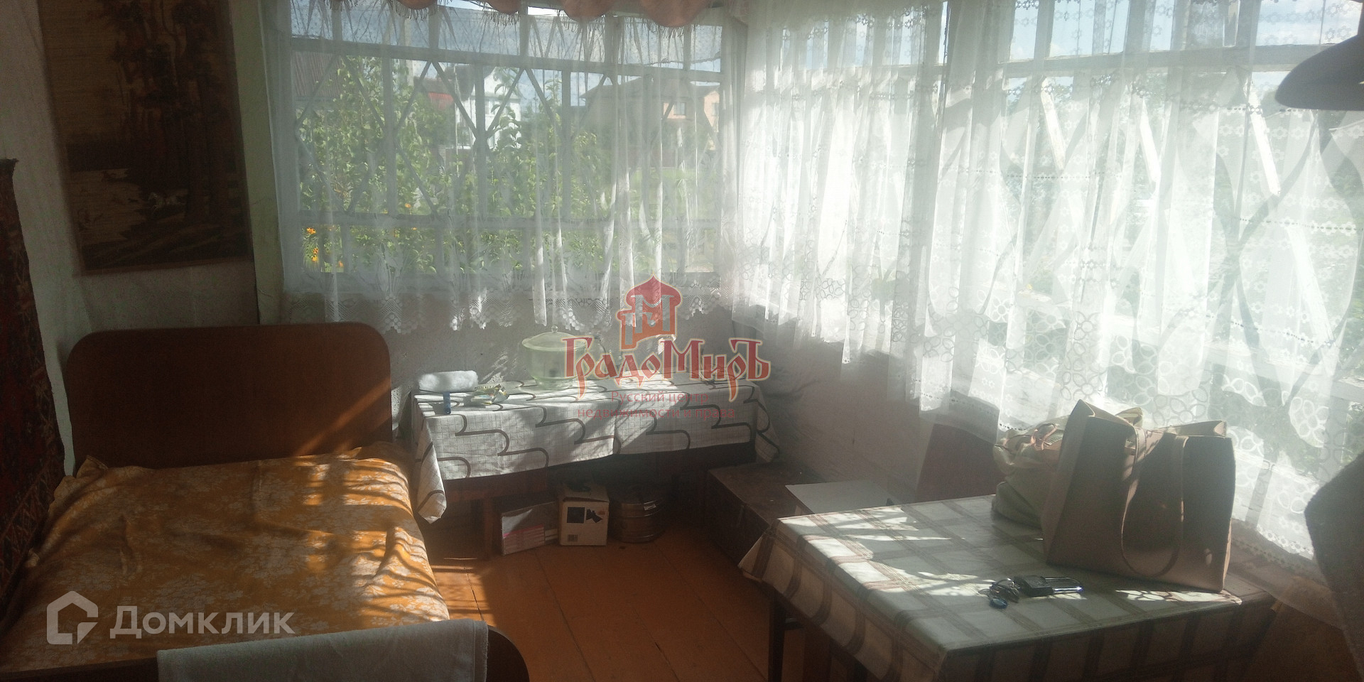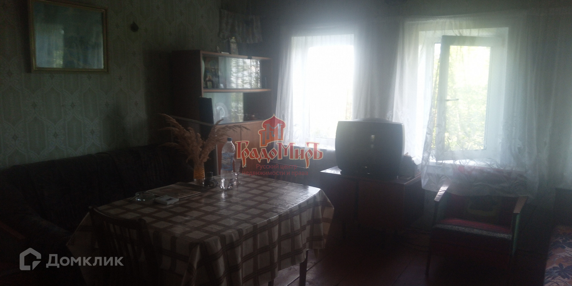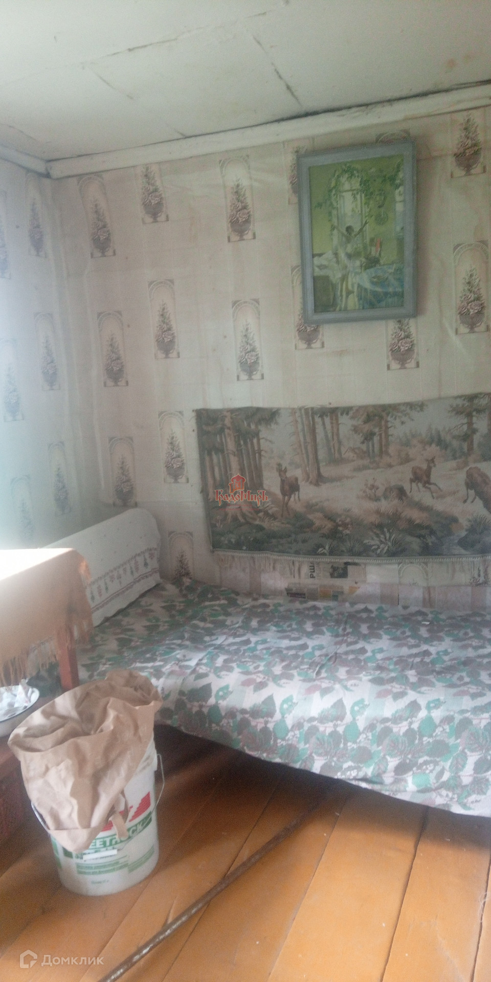 Дом построен из бревна. В доме комната 20 кв.м, в которой установлена русская печь. Прихожая 12 кв.м, кухня 7 кв.м, терраса 7 кв.м.