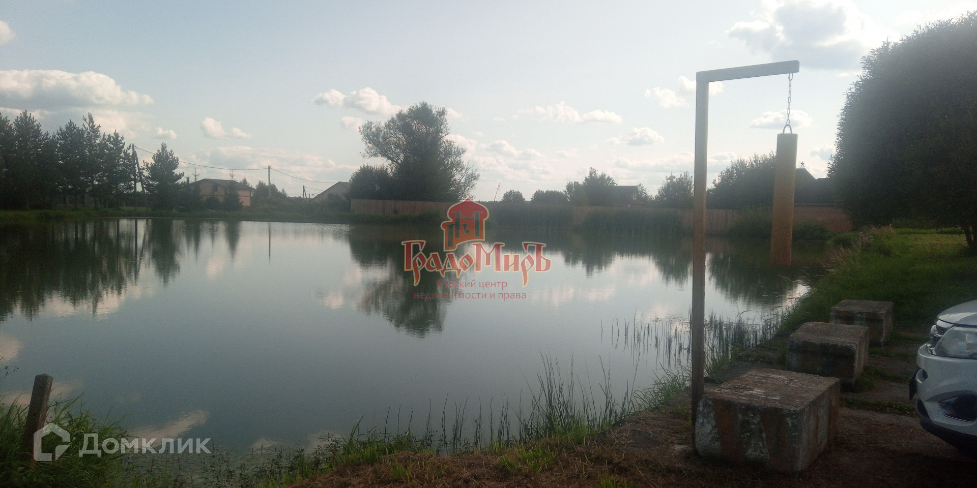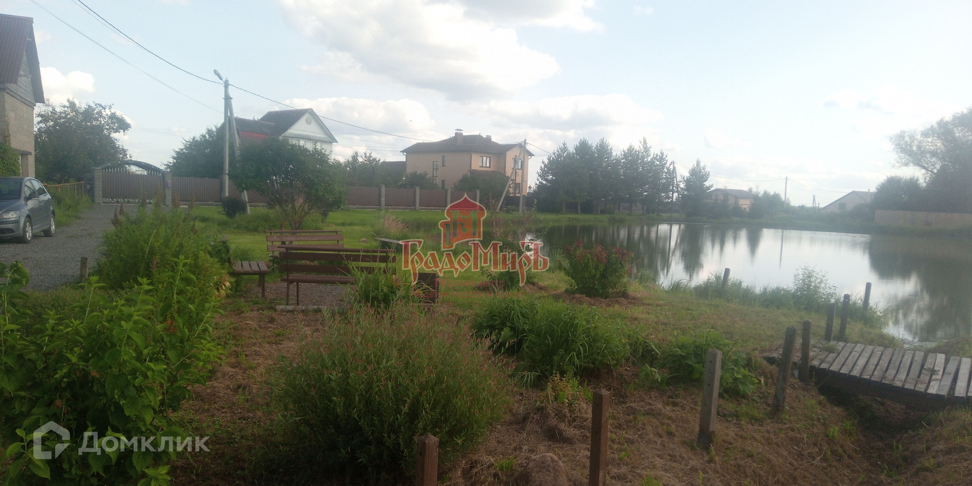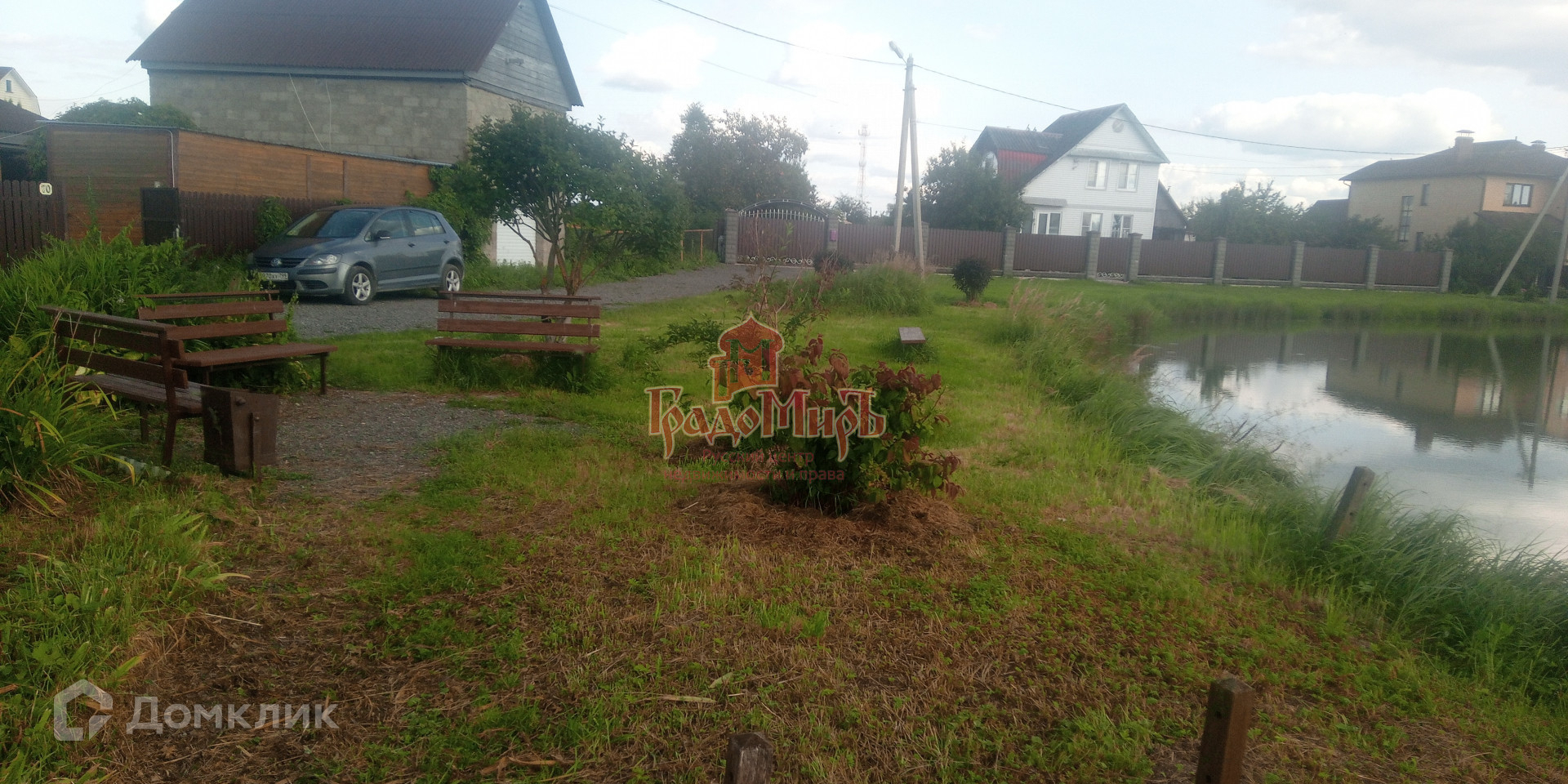 Из дома шикарный вид на пруд, с оборудованной для отдыха территорией.