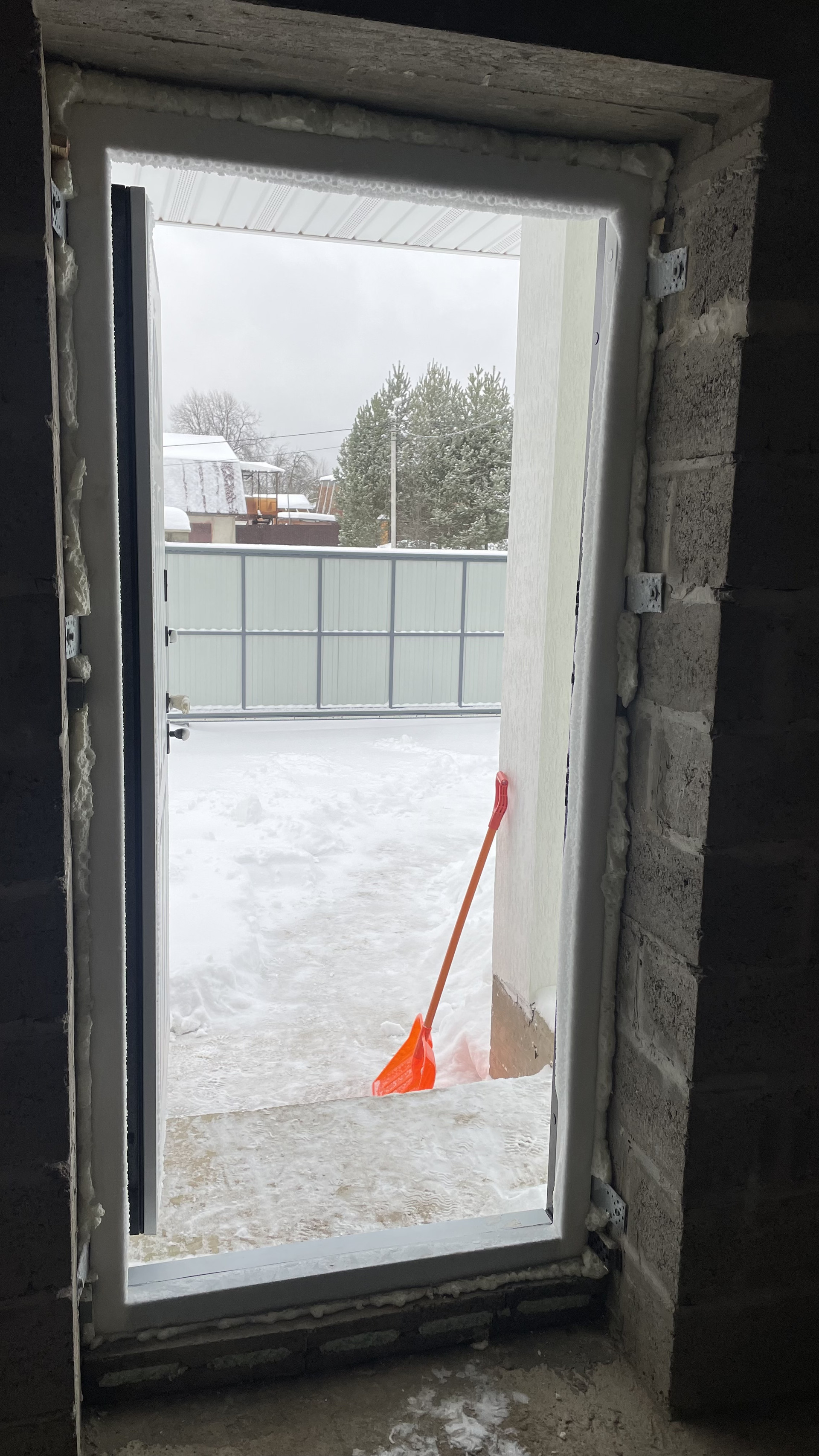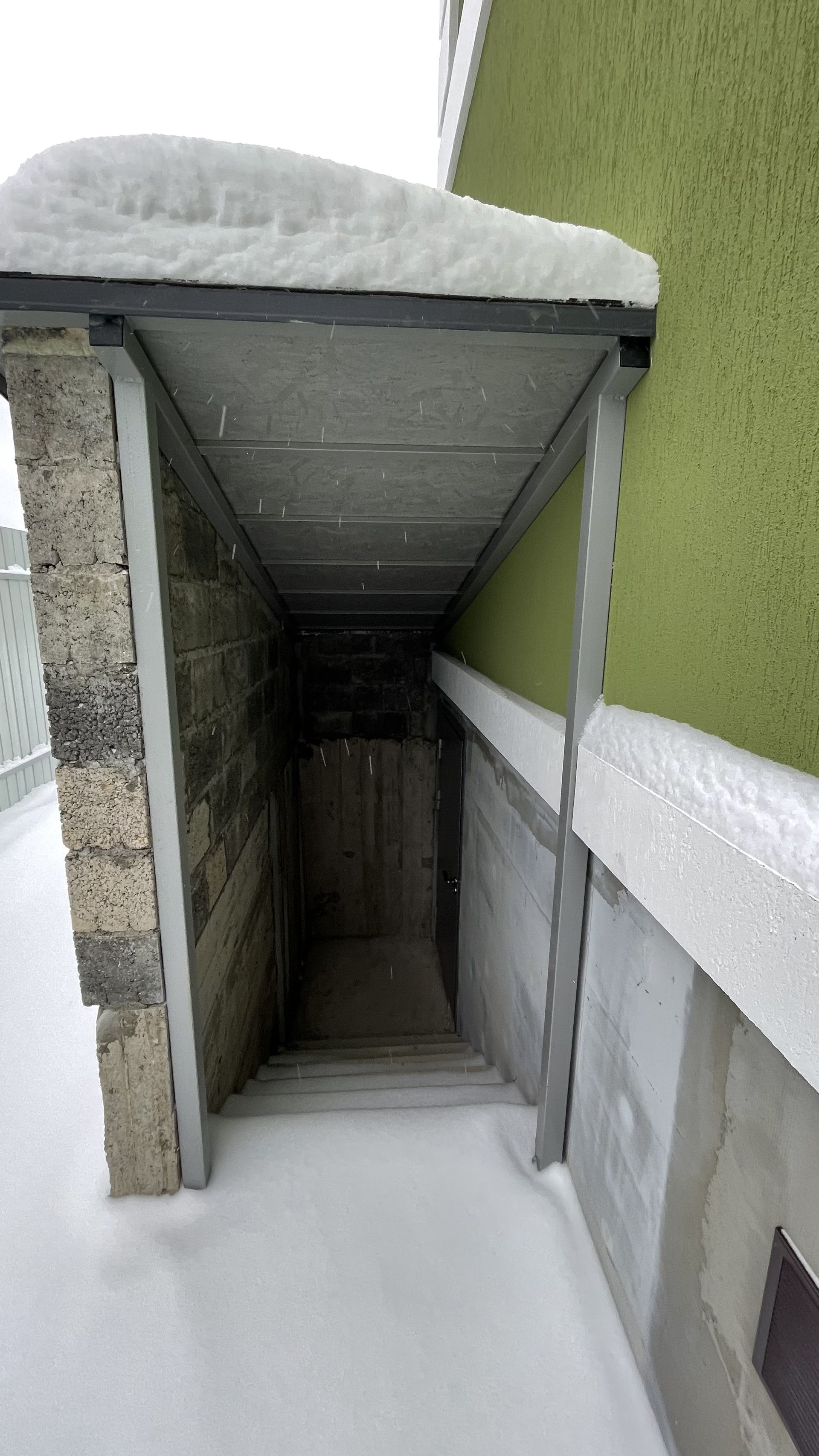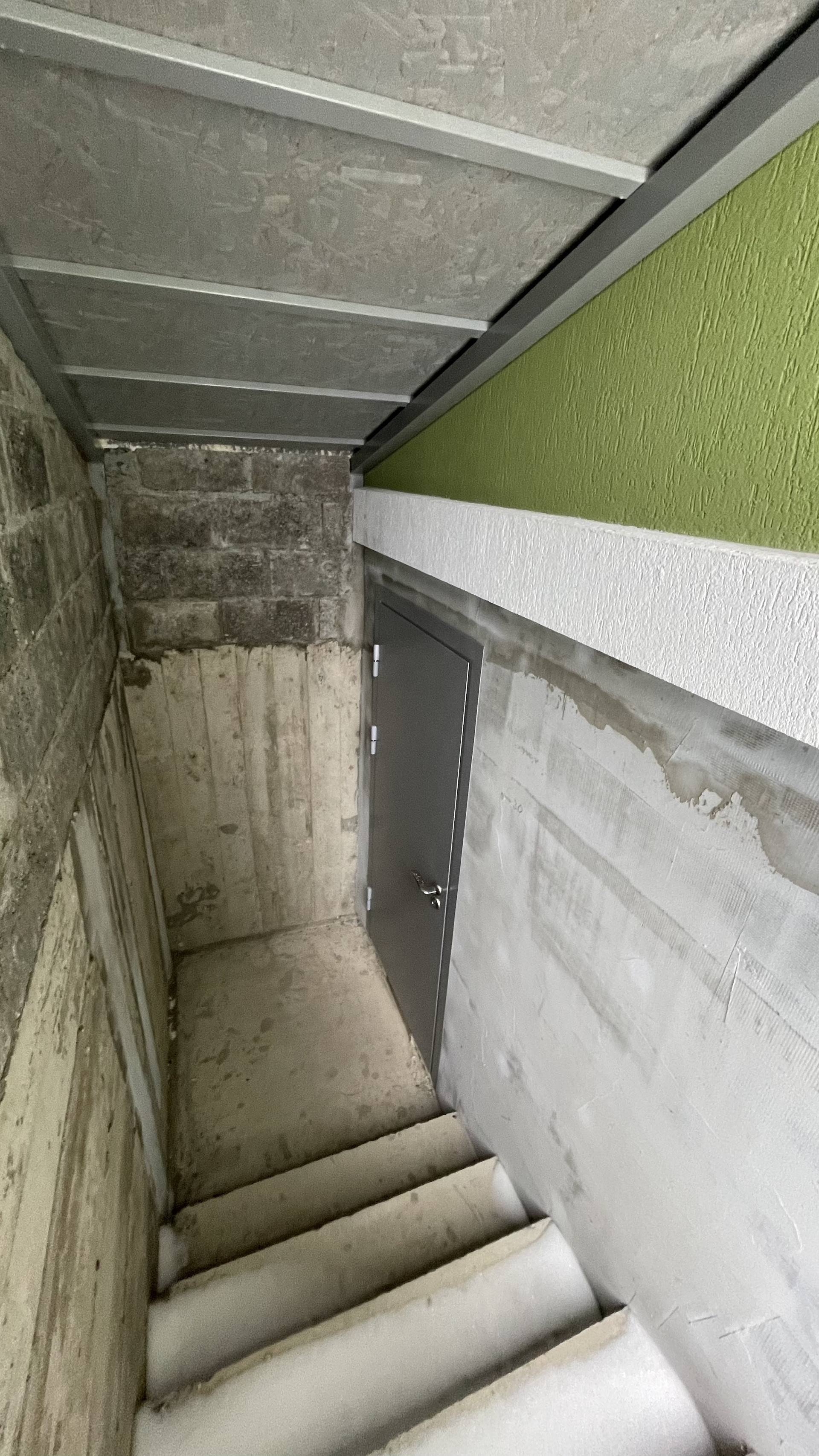 Сделан подвал с лестницей и тёплой дверью.
