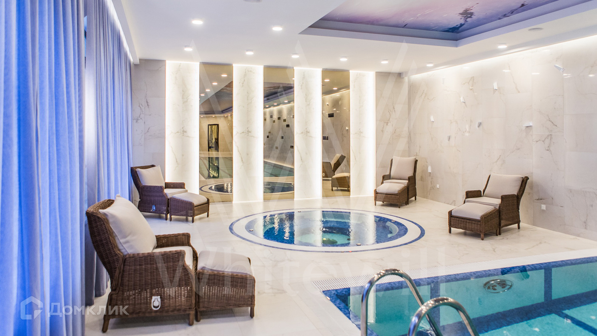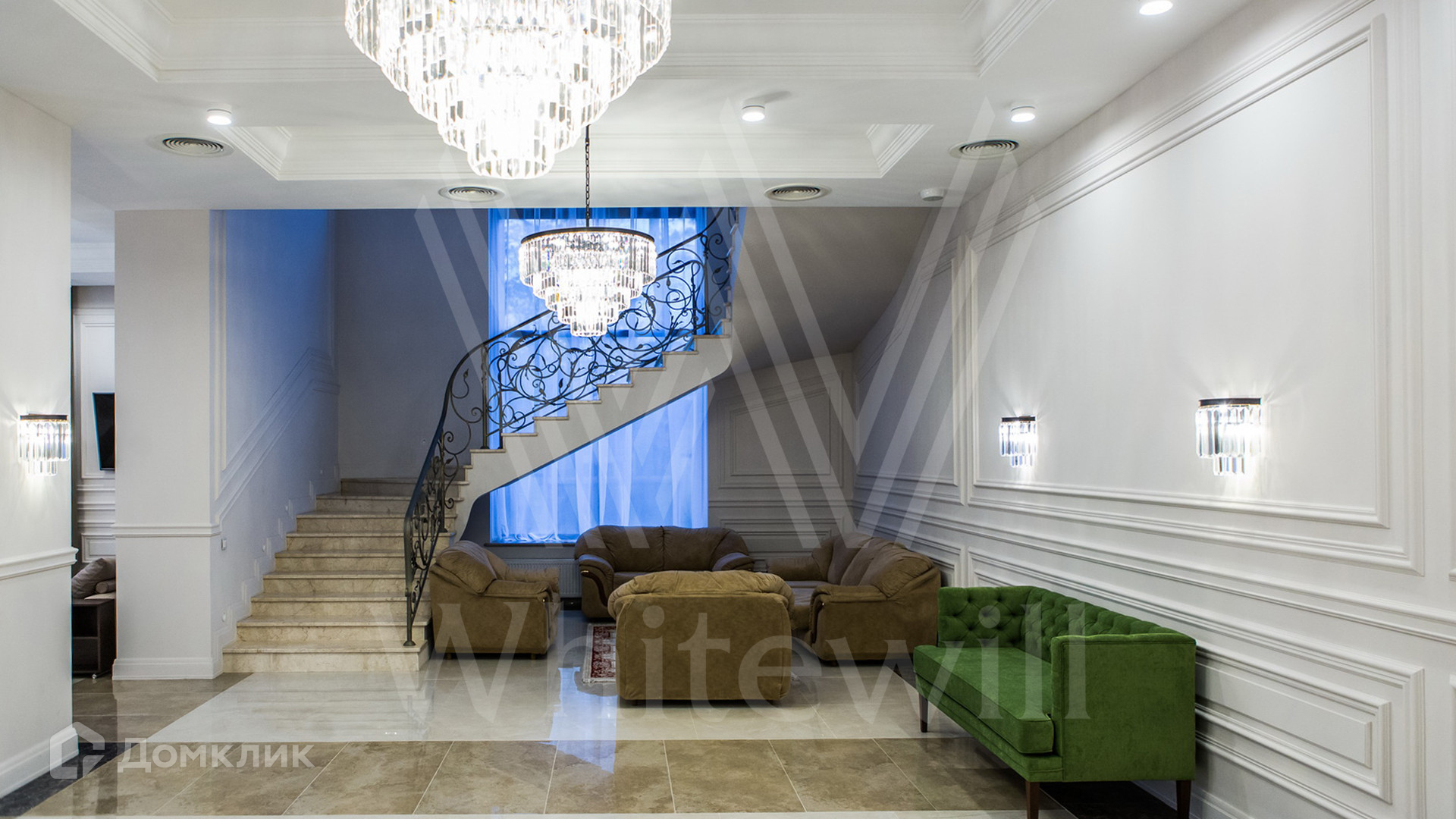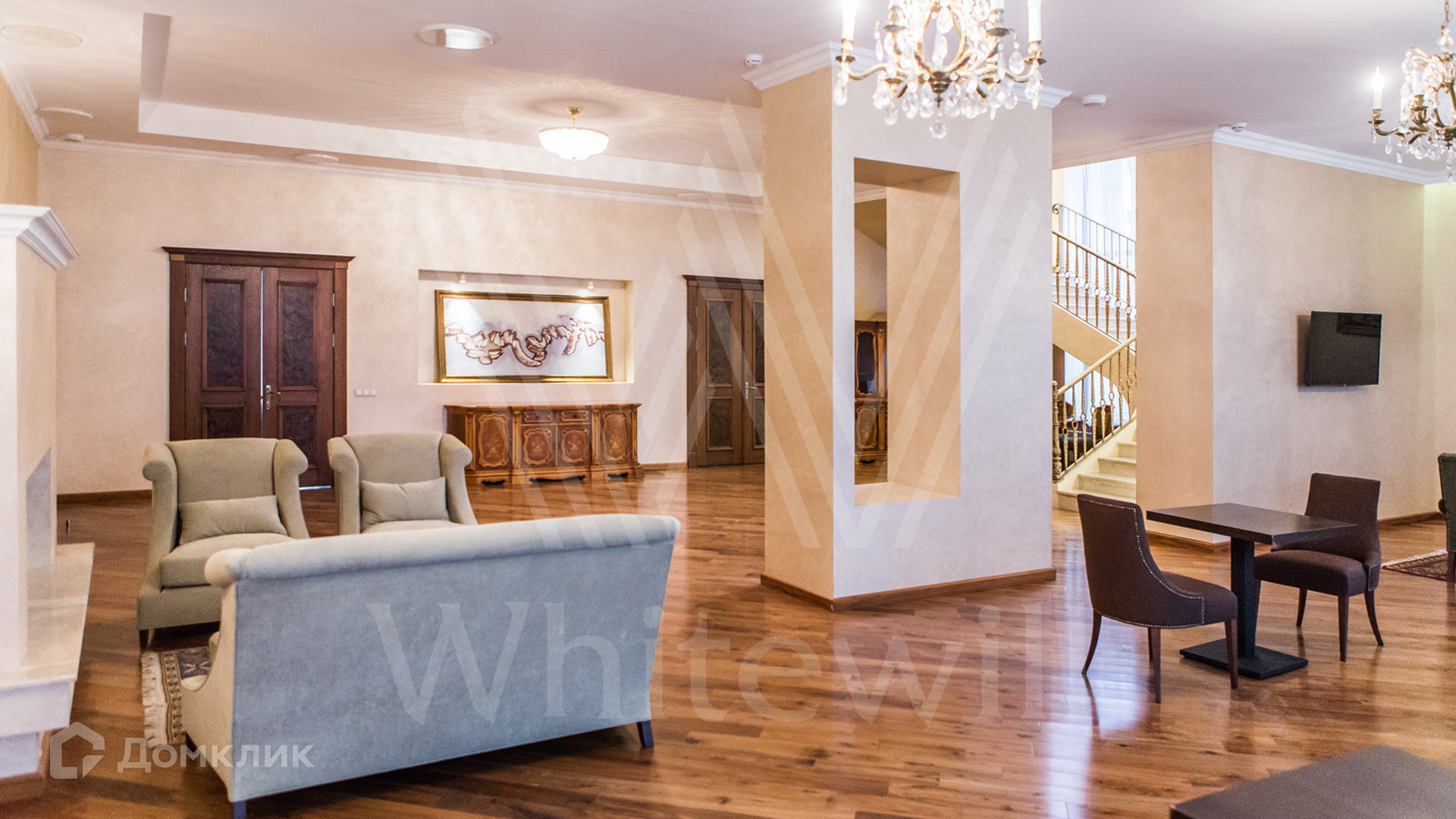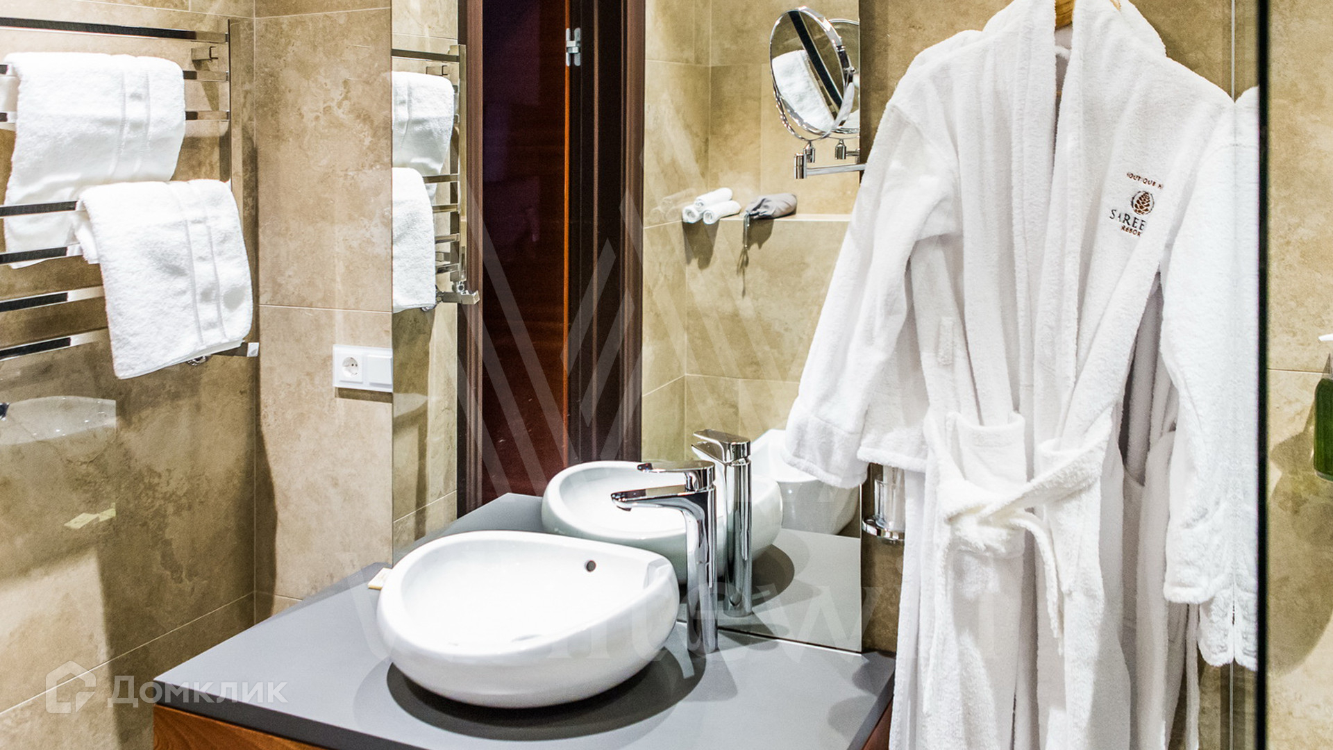 ID 11 342. Большое Сареево. Загородный ансамбль из трех корпусов общей площадью 2900 м² построен на просторном лесном участке 3 гектара. Фасады зданий выполнены в европейском стиле и облицованы светлым камнем и коричневым клинкерным кирпичом. Современный интерьер сочетает элементы классики и лофта, в отделке использованы теплые оттенки. В каждом из корпусов расположены 5 спален, SPA-зона с бассейном, сауной и хаммамом и кухня. Территория с ландшафным дизайном, расположенная на склоне холма, включает парковую зону с прогулочными мостами, верандами и террасами для отдыха, а также мини-зоопарк и ферму. На участке предусмотрены дом для гостей 200 м², детский домик 300 м², дом для охраны 100 м², охотничий домик 50 м² и подземный паркинг.