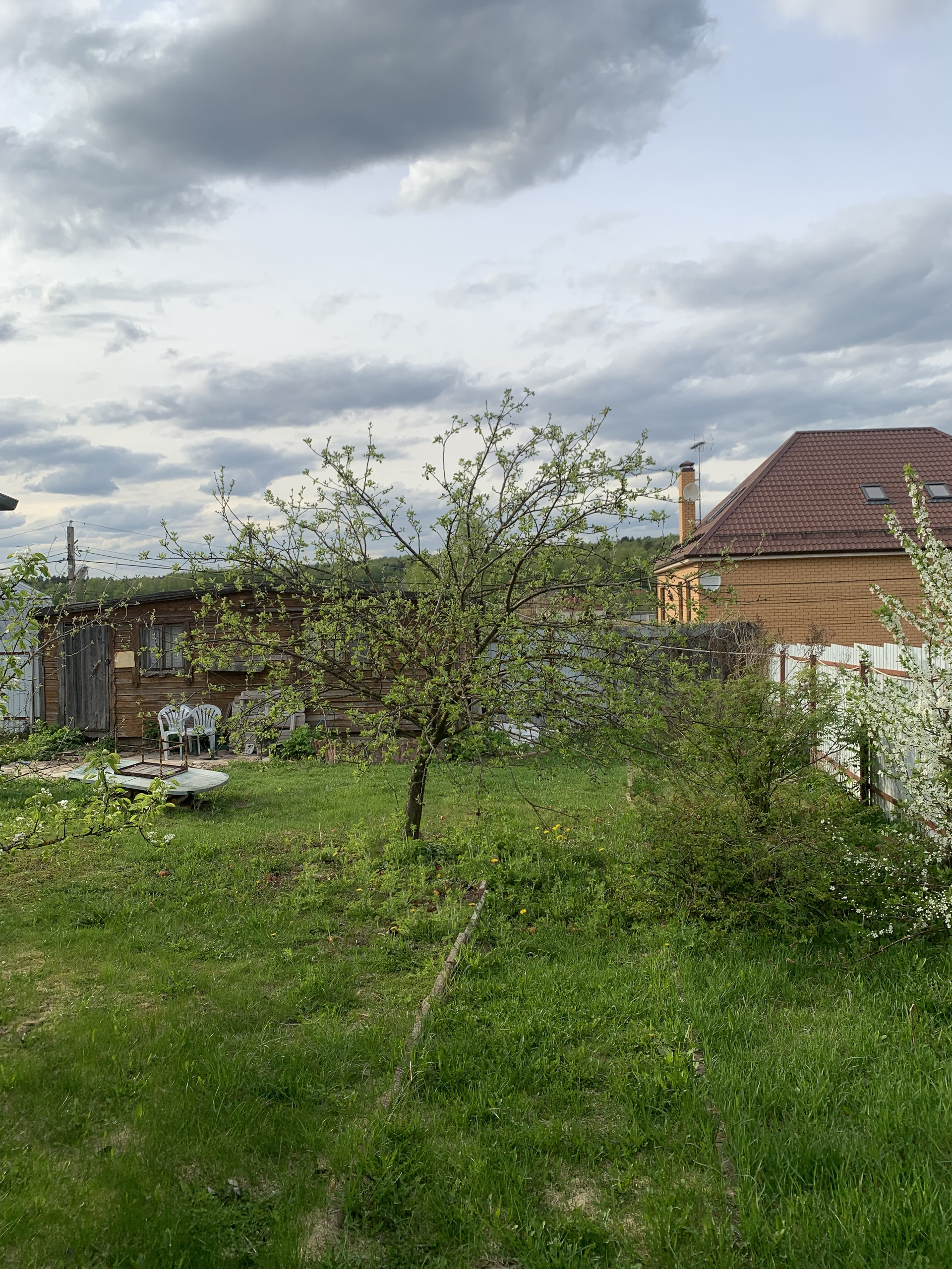 Земельный участок (11 соток) сухой, ровный, правильной формы, окружен металлической сеткой рабица. Участок с плодородной землей. На участке растут плодовые деревья (яблони, груши, слива), кустарники.