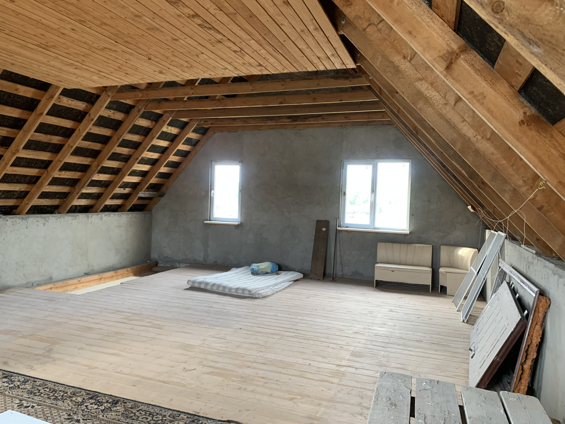 На второй этаж можно подняться по лестнице, который включает в себя одну большую комнату, которую можно дополнительно разделить на две или три комнаты.