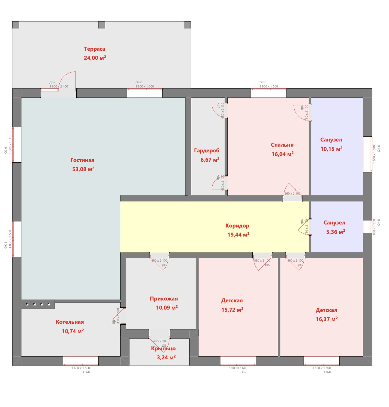 Площадь дома 200 м2, 1 этаж, газоблоки