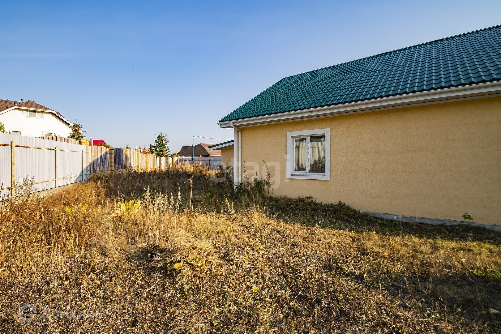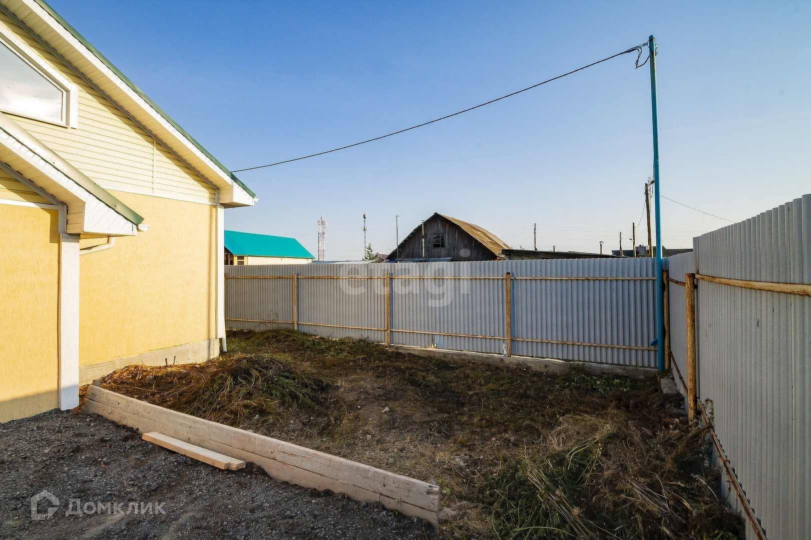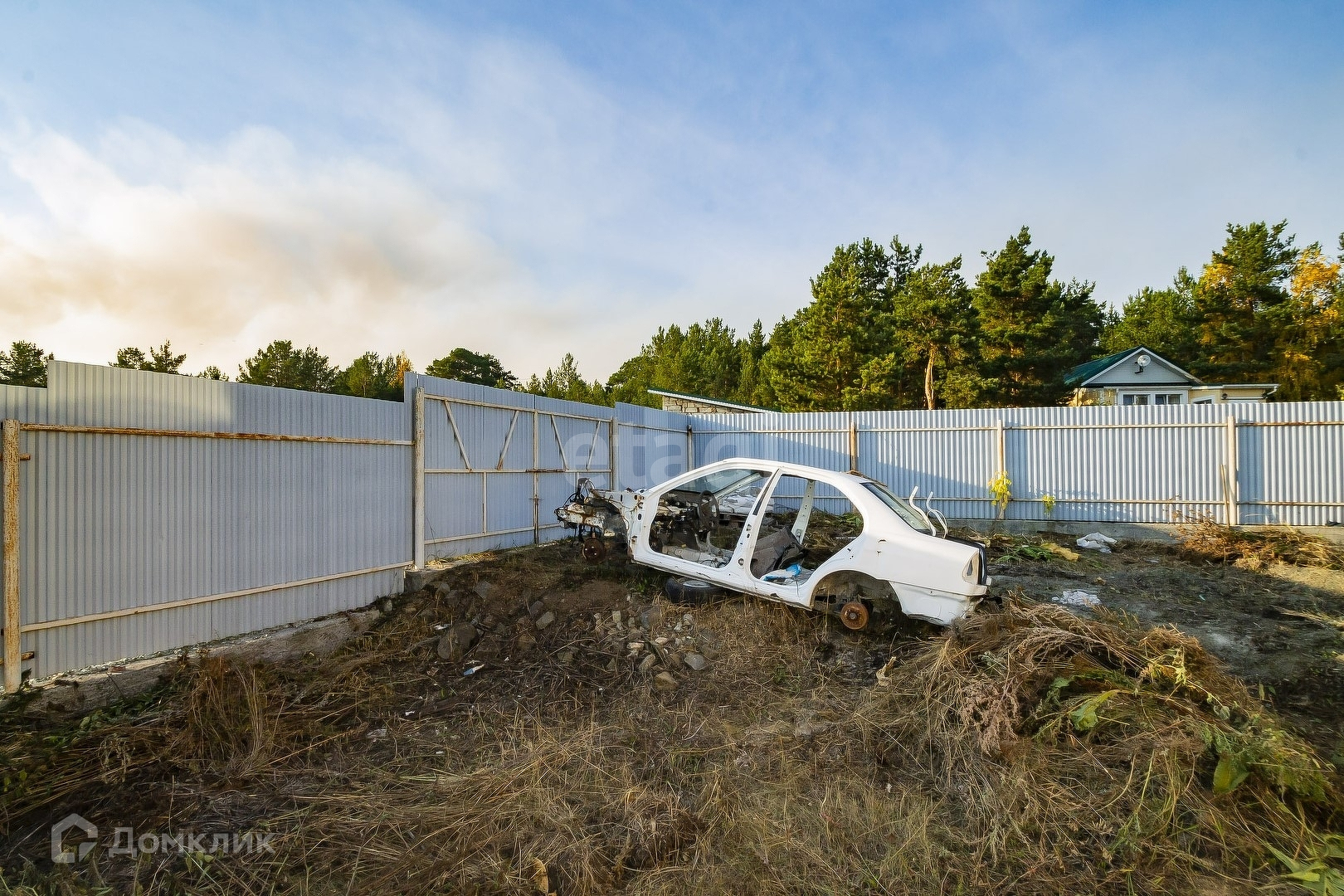 По периметру участка установлен забор из профлиста на ленточном фундаменте