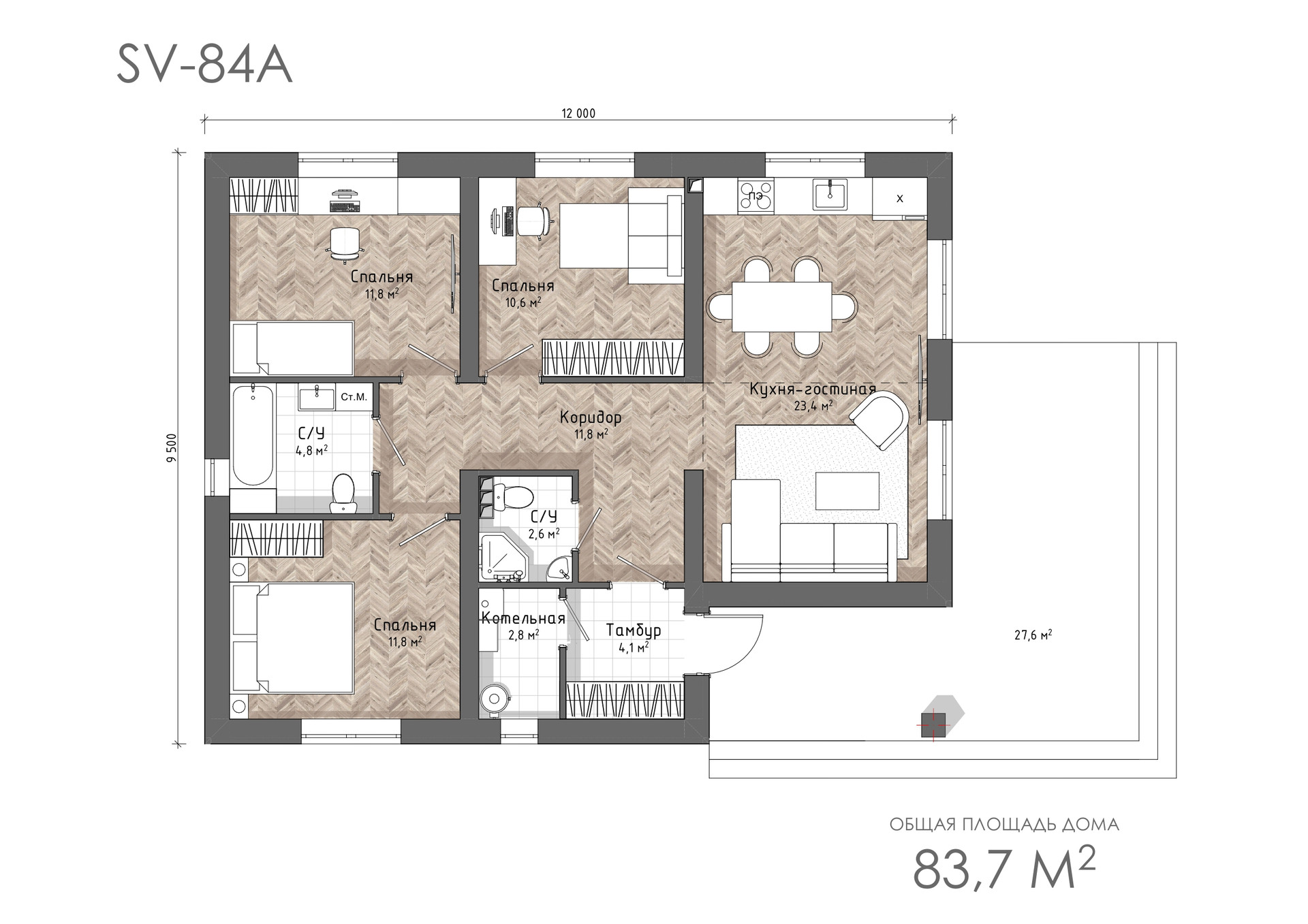 Общая площадь 84 м2