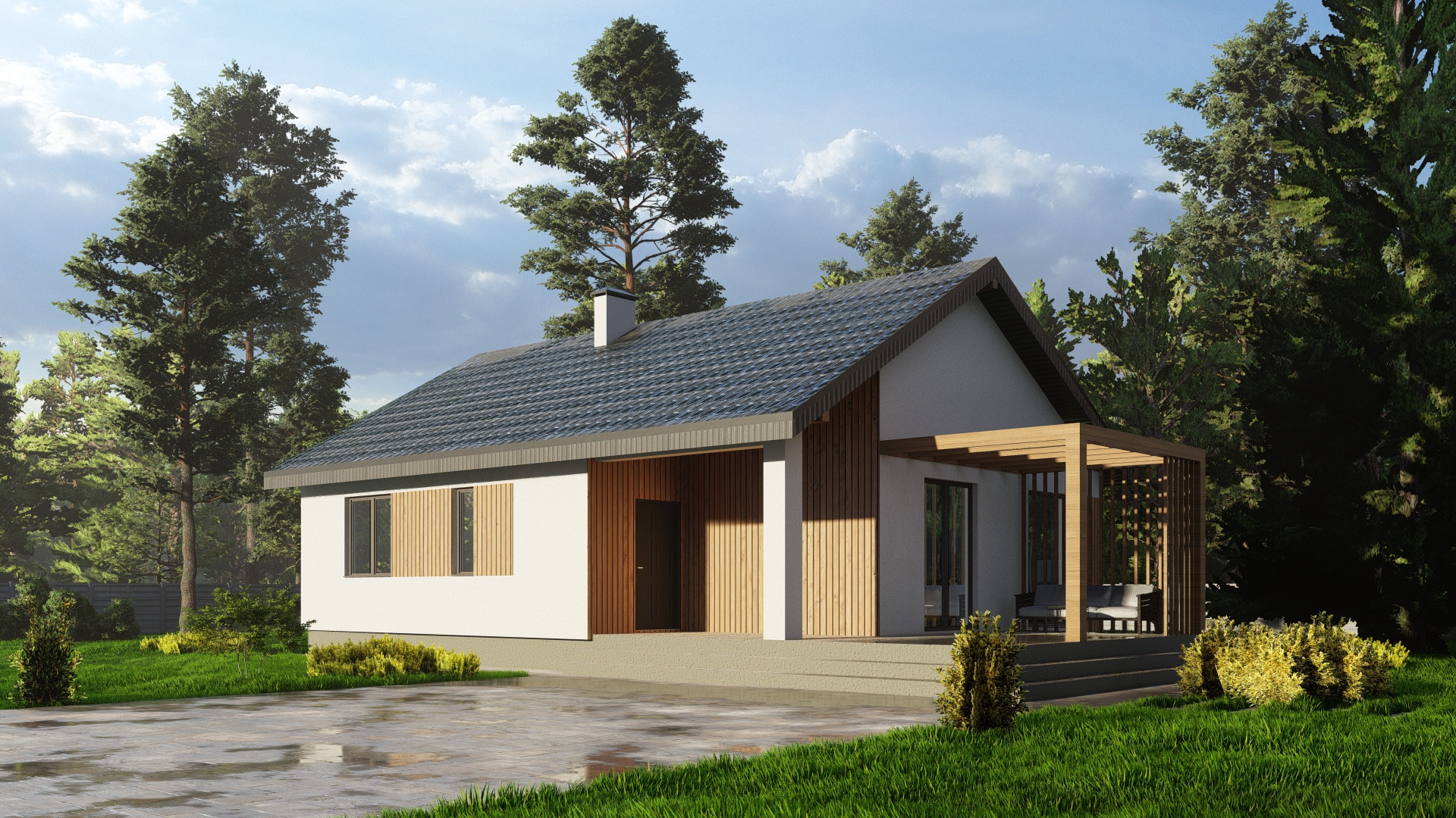 В продаже комфортный дом 84 м2 с просторной угловой террасой 27,6 м2 для счастливой загородной жизни!✨