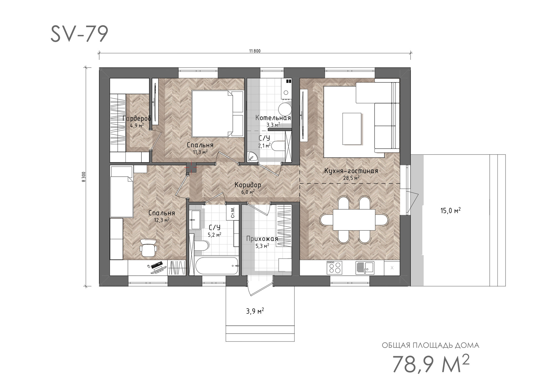 Общая площадь 79 м2