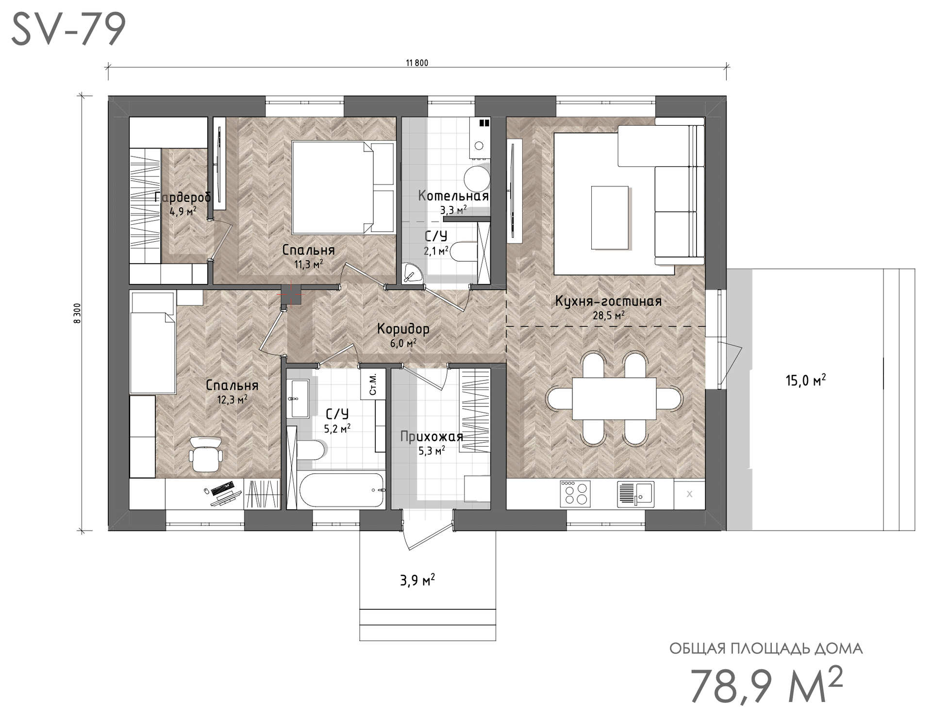 - Общая площадь: 79 кв. м.