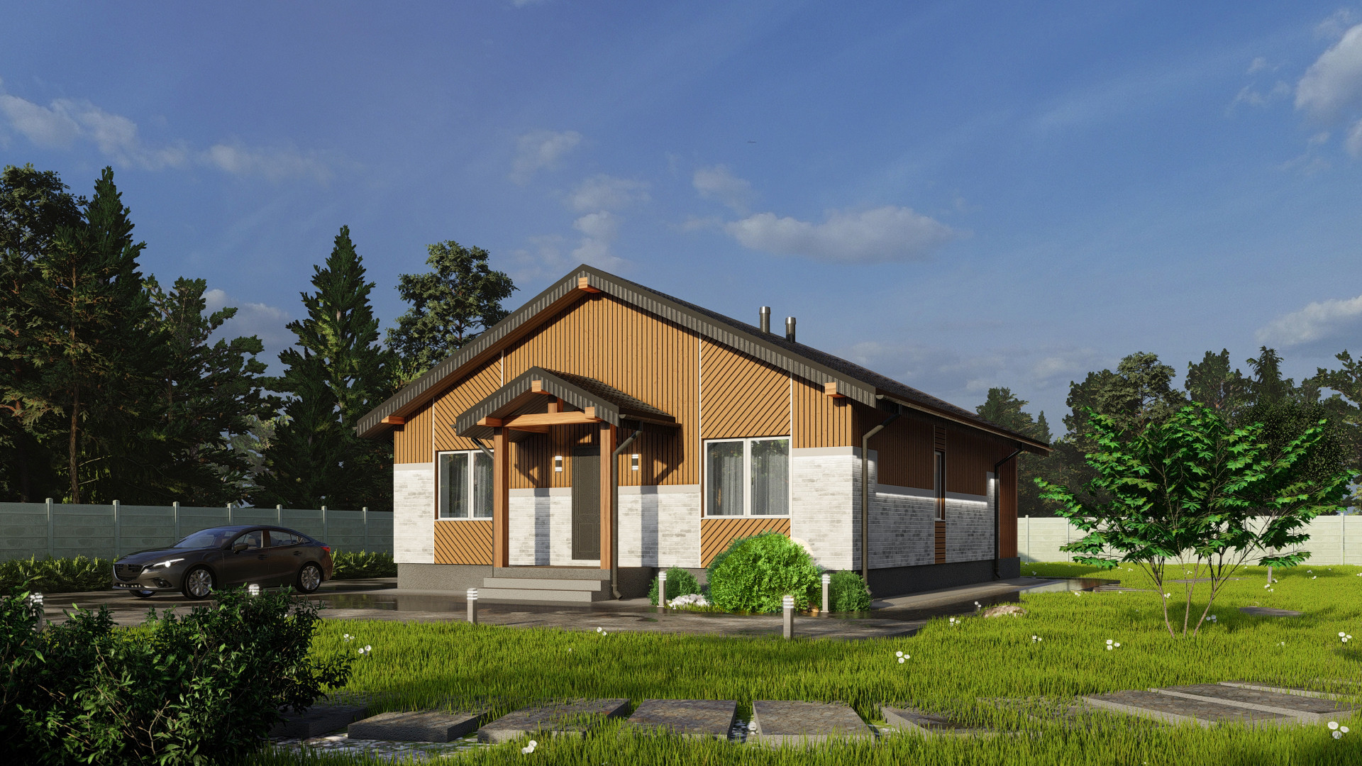Фасад - декоративная штукатурка и краска немецкой компании DERUFA, утепеление 100мм минеральной эковаты.