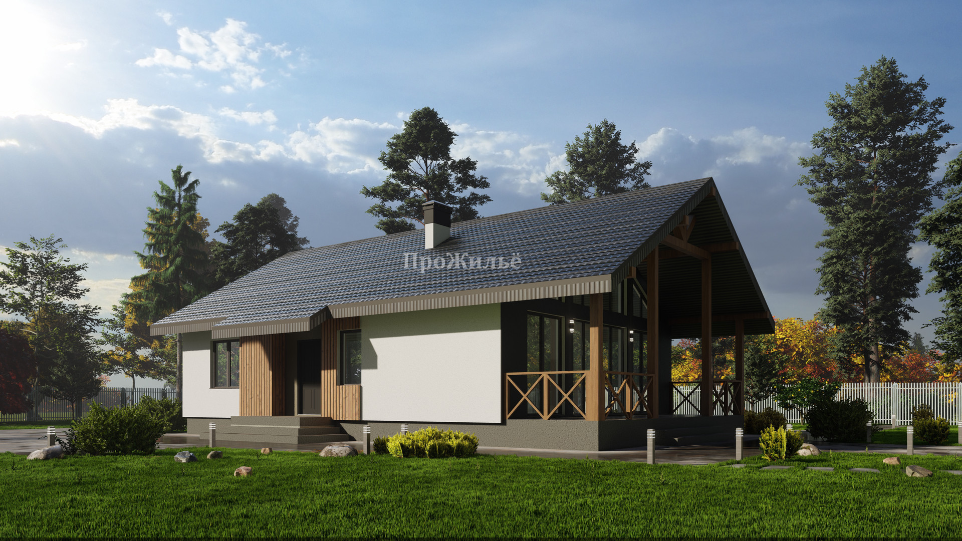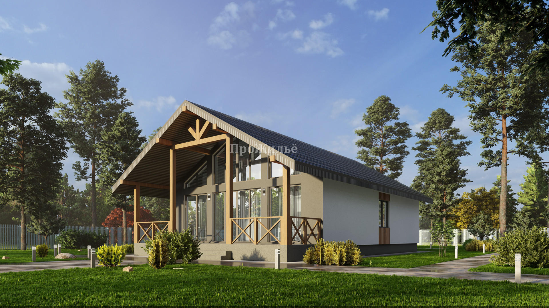 Кровля - утеплитель крыши "KNAUF", толщина утепления 200 мм, покрытие мягкая кровля. Фасад - декоративная штукатурка и краска немецкой компании DERUFA, утепление 100мм минеральной эковаты.