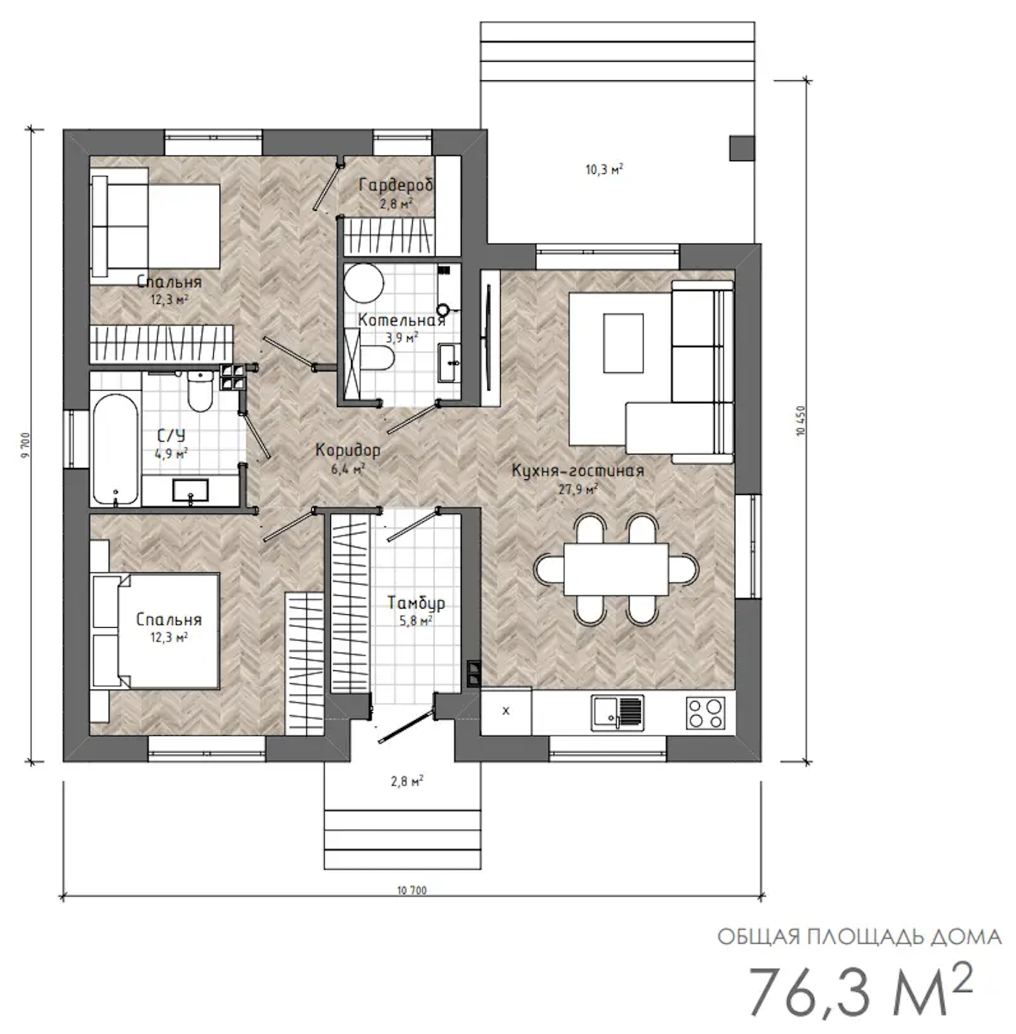 - Общая площадь: 76 кв. м.