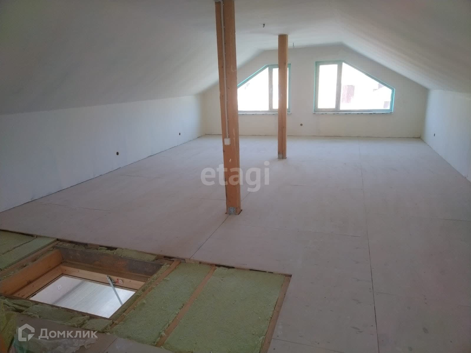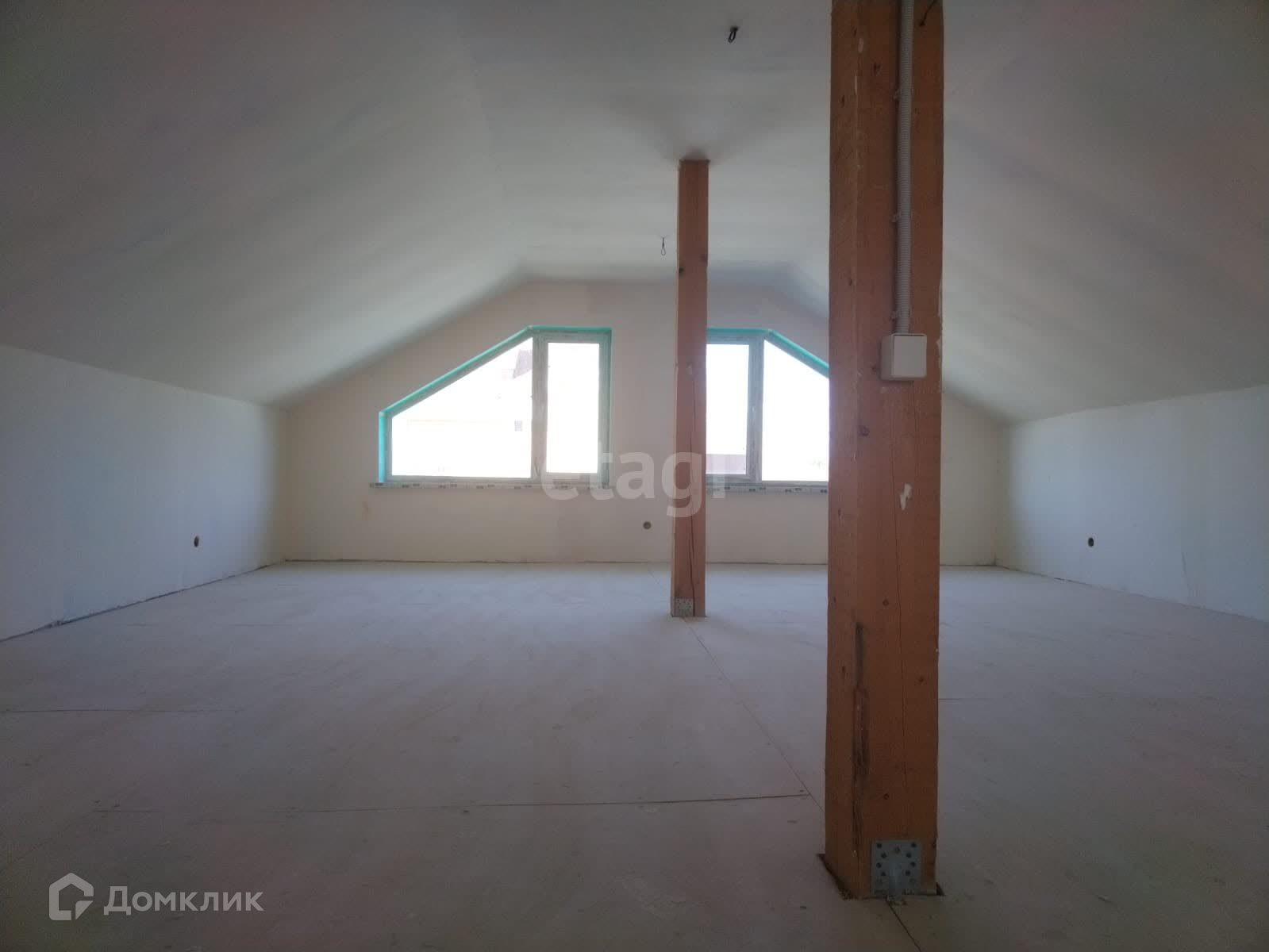 Второй этаж мансардные 60 м2, без отделки и отопления.