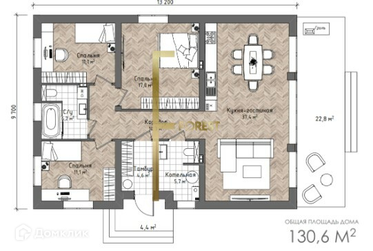 Общая площадь 130.6 м2