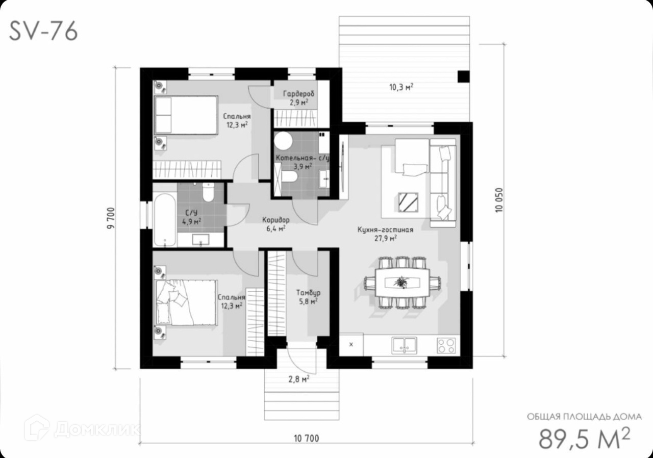 Общая площадь 89.5 м2