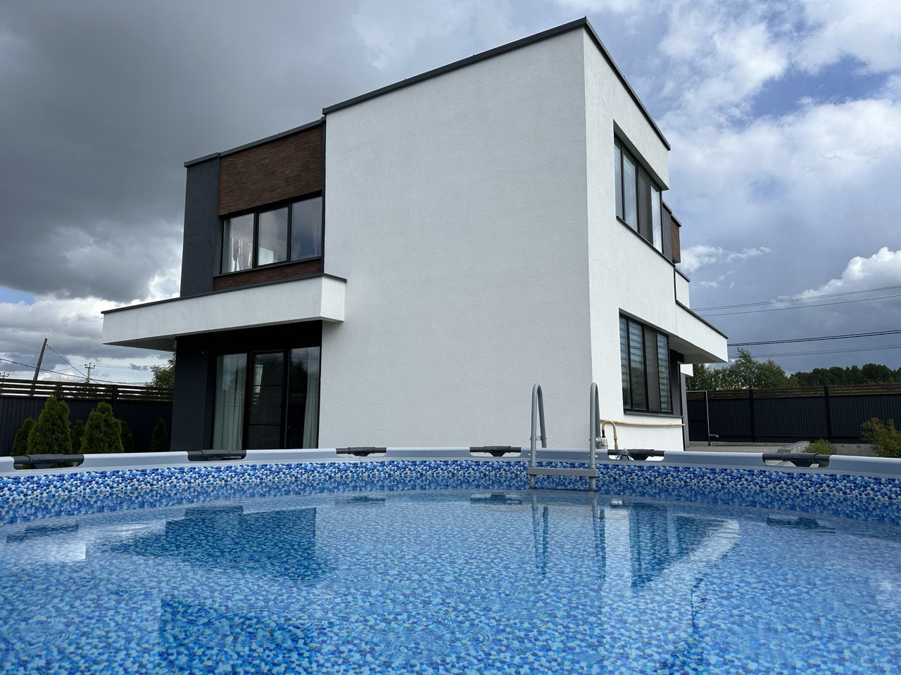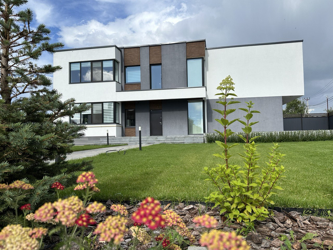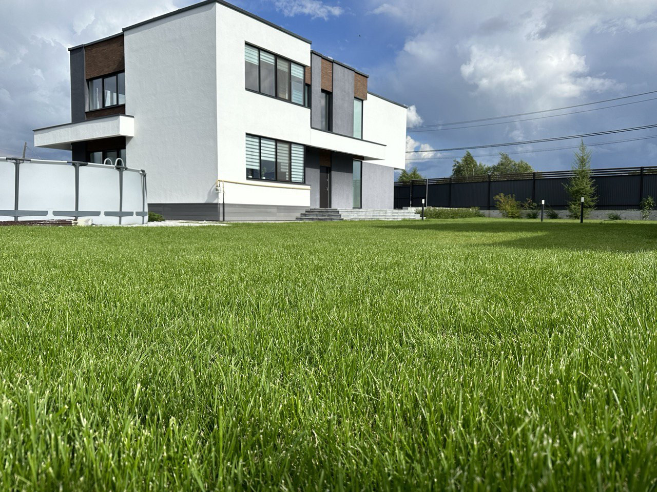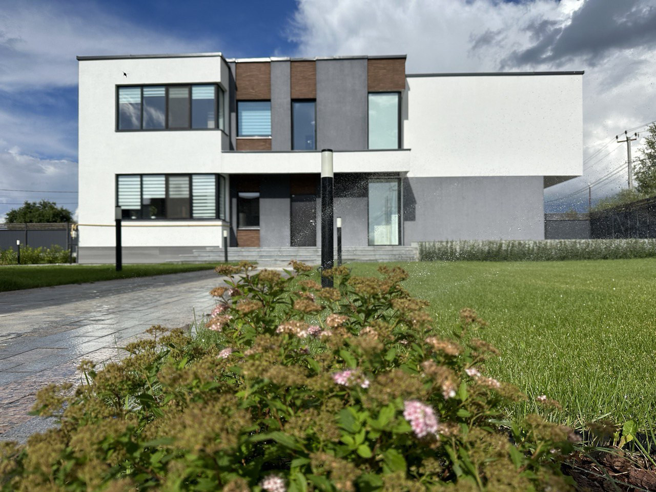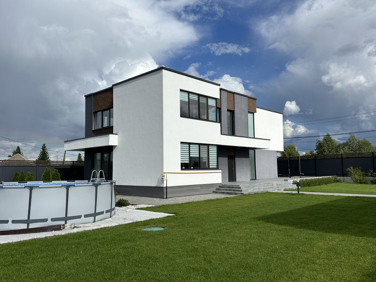 Выполнен ландшафтный дизайн придомовой территории, сезонное обслуживание проводится регулярно. Установлена система авто полива. По всей территории установлено видеонаблюдение. Установлен бассейн, с раздвижной системой укрытия.