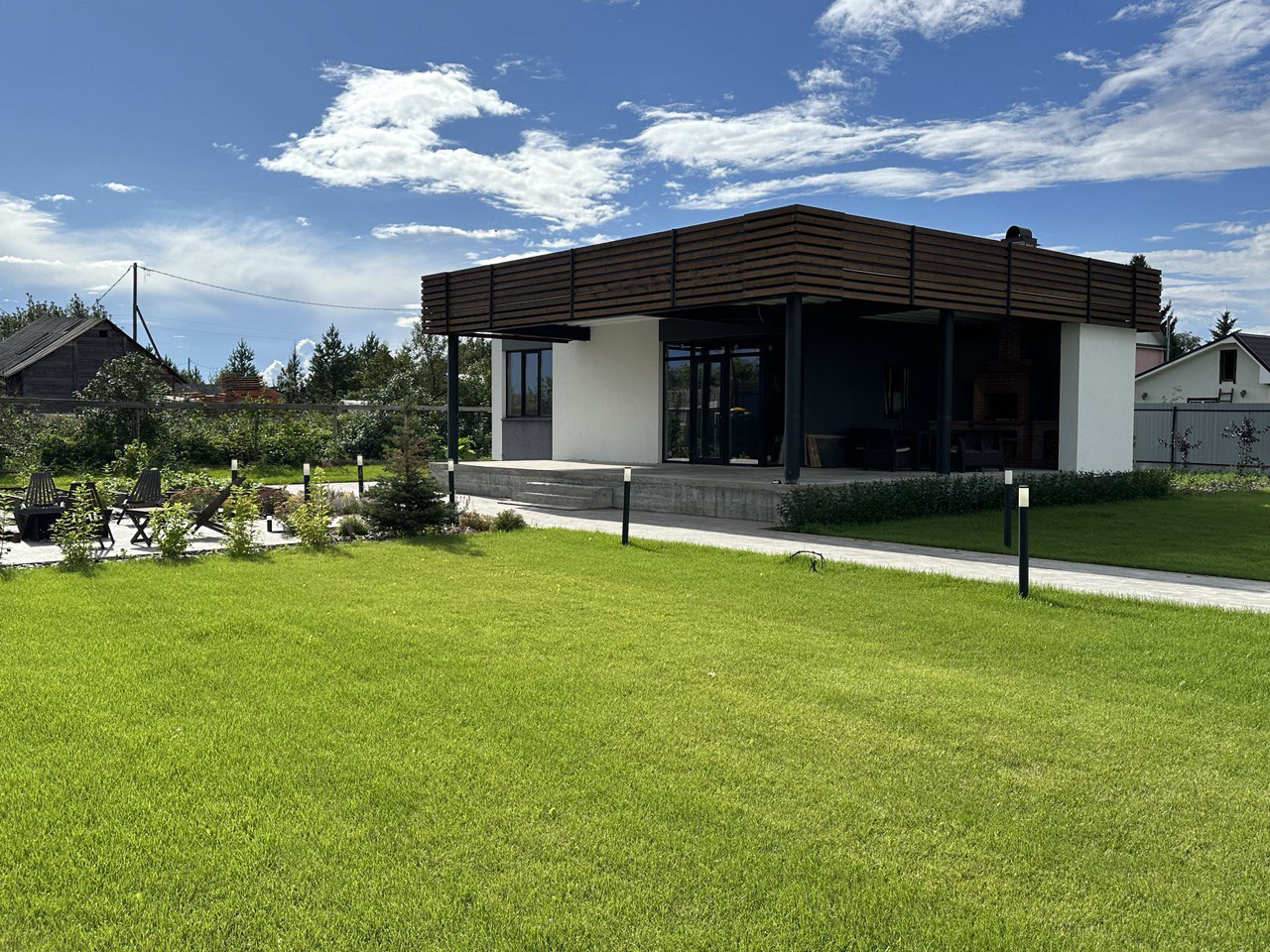 С задней части дома расположено уютное патио.