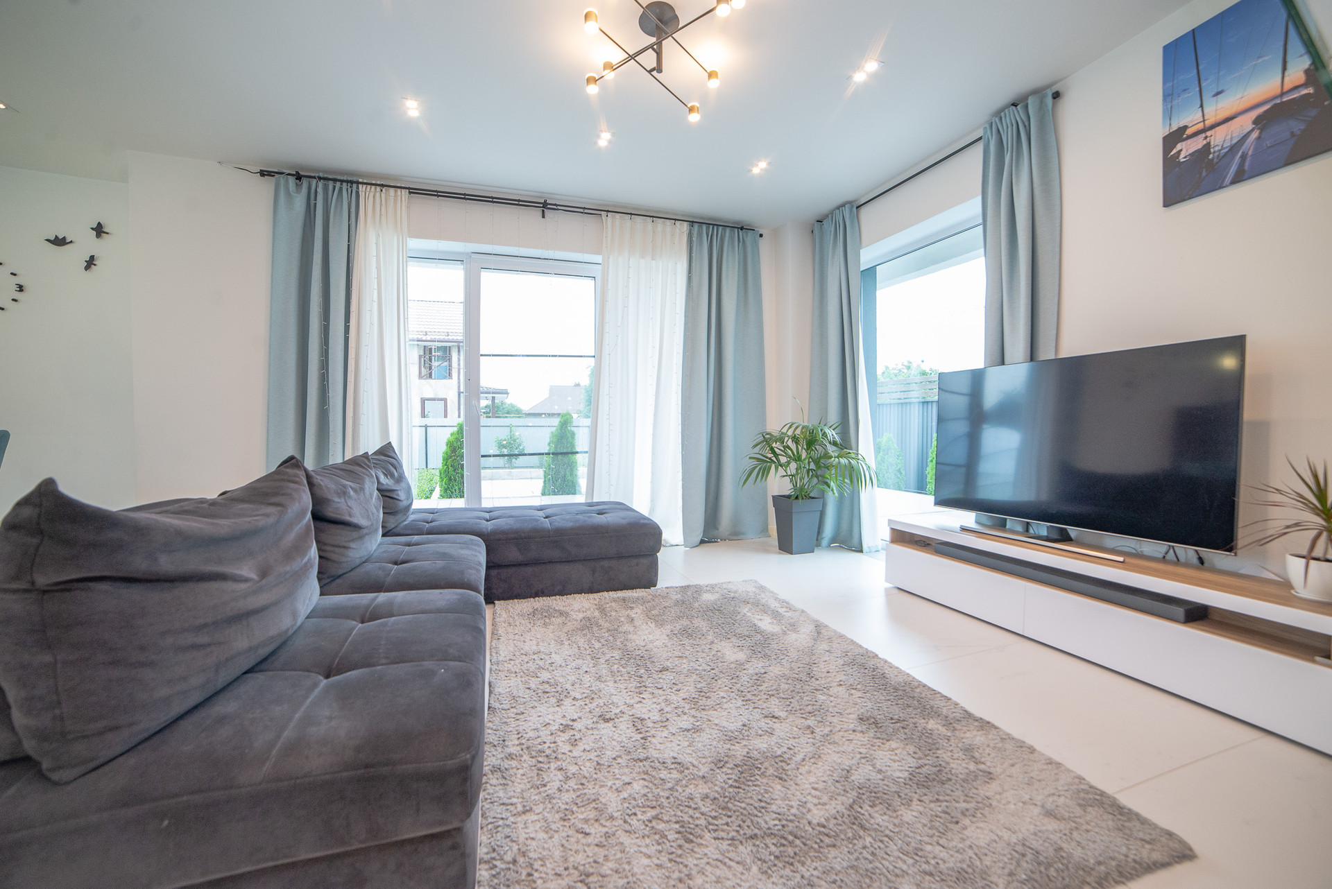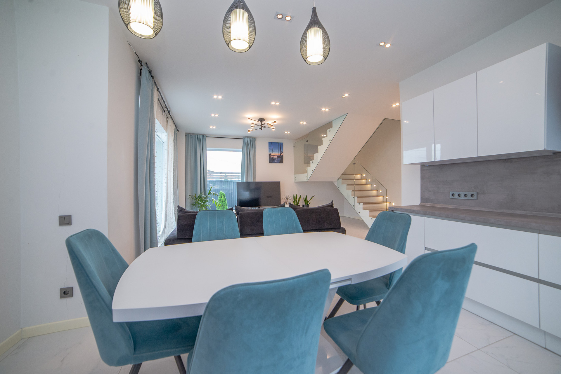 Пространство гостиной и зона кухни-столовой – 34м2