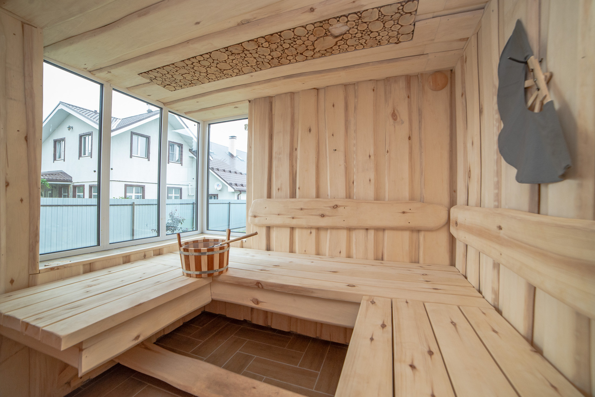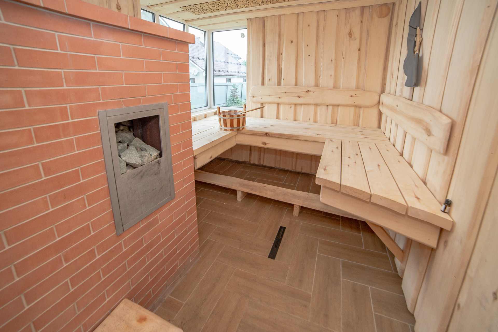 Настоящая русская баня - особенное место, которое является важным и существенным атрибутом русской души. Внутренняя отделка парилки выполнена из осины.