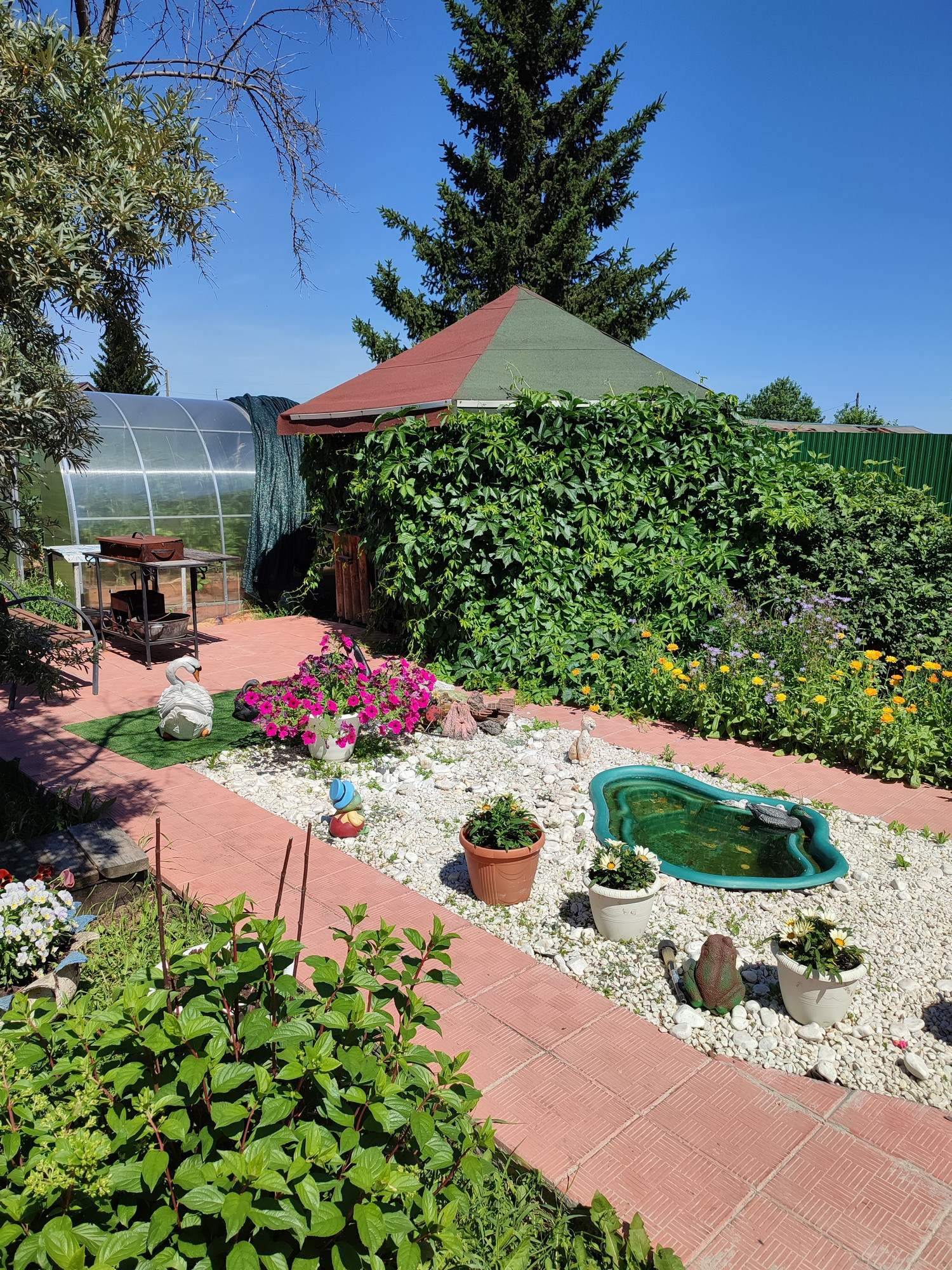 Участок полностью разработан. Две теплицы, беседка. Зона отдыха. Земля богатая, растет всё.
