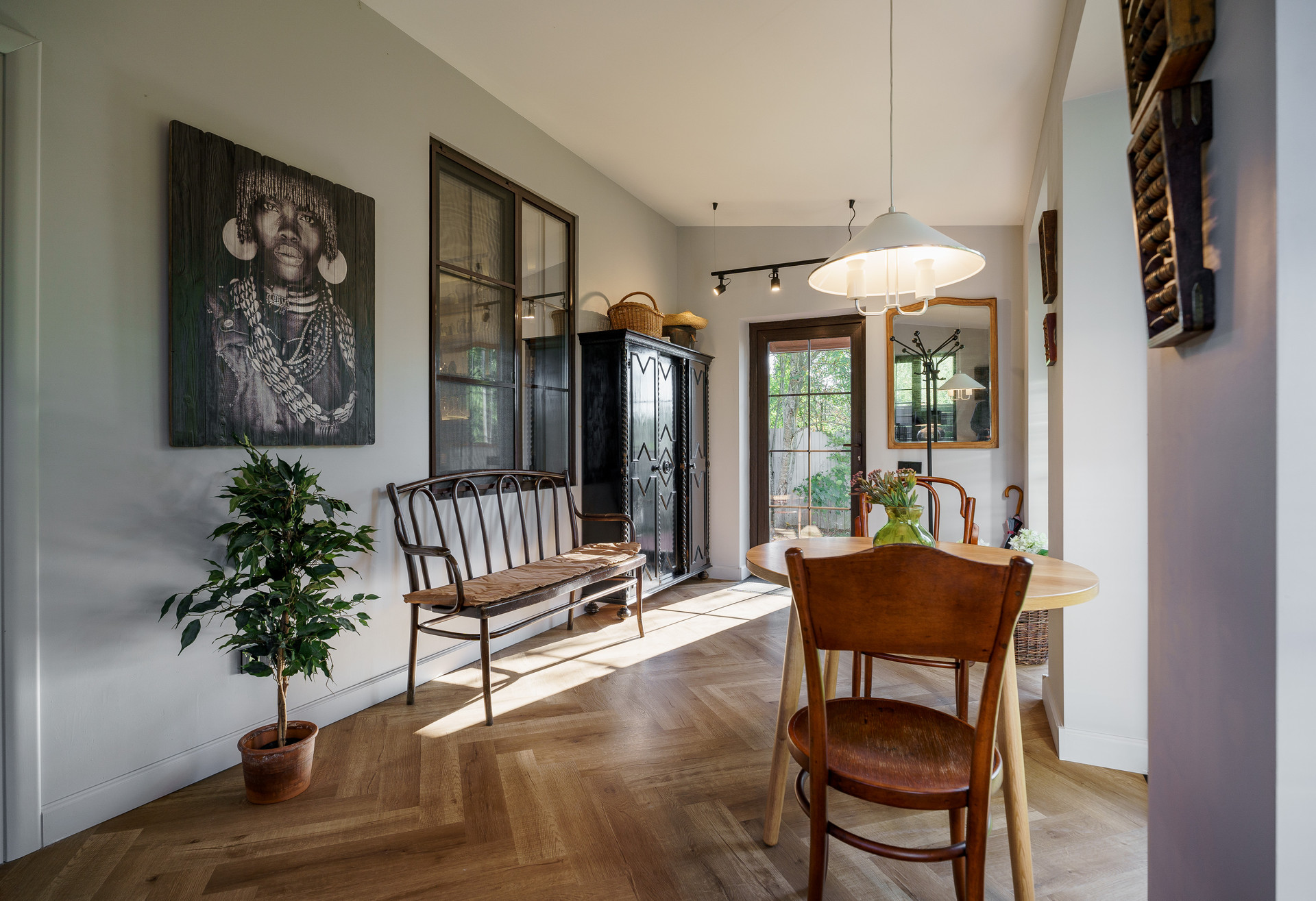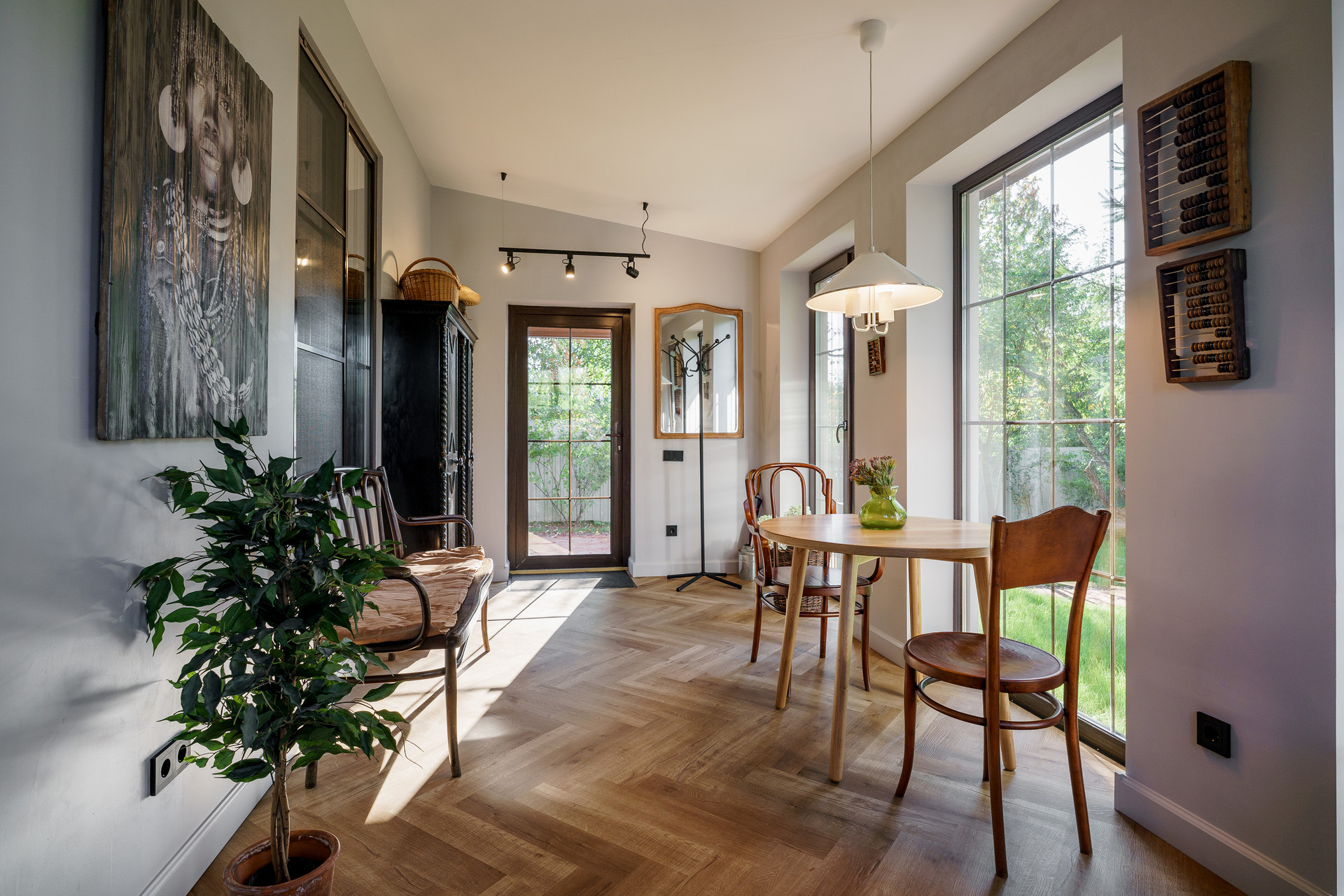 При входе в дом - просторная, светлая, с большим количеством окон веранда 14 метров на которой можно завтракать и любоваться садом.