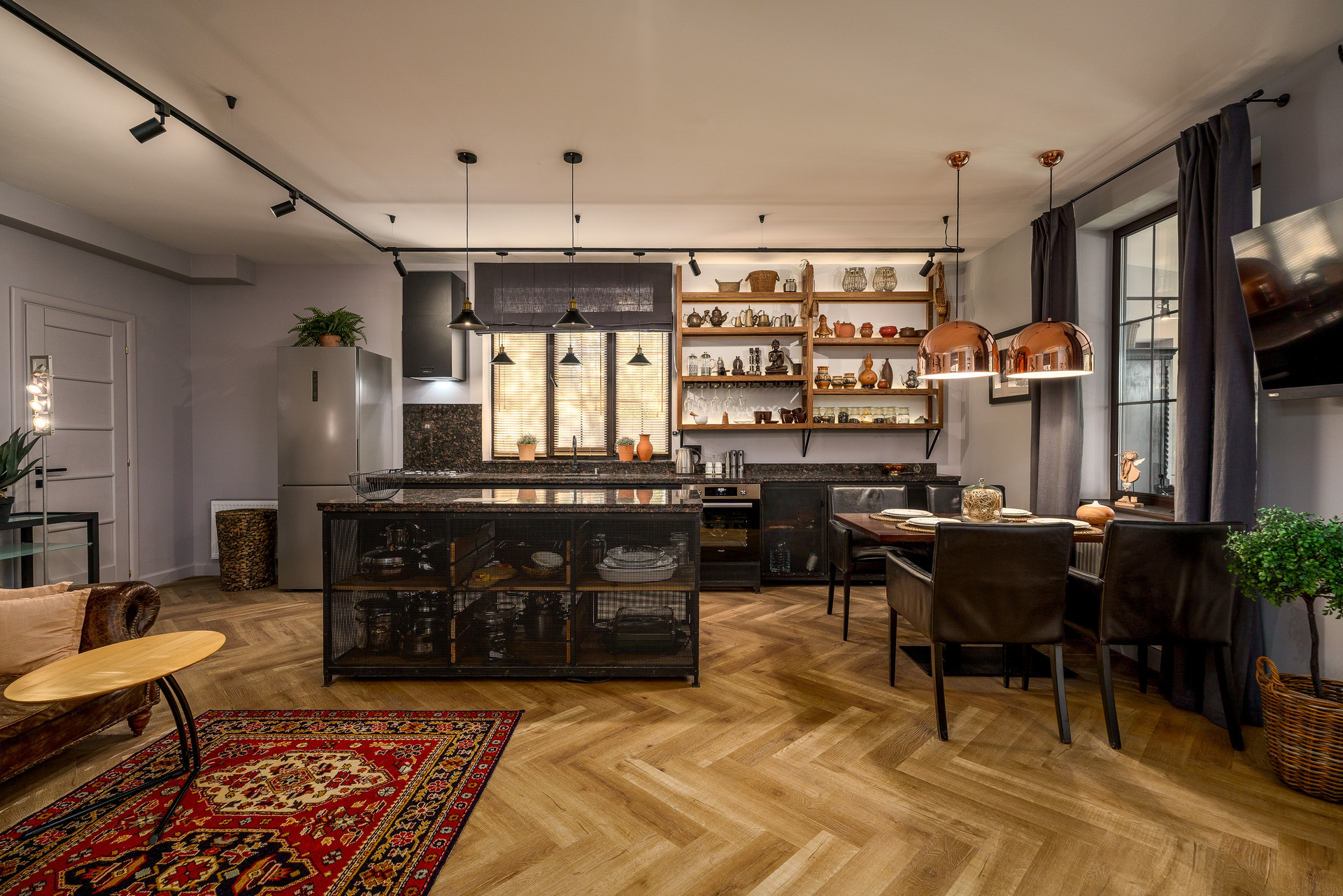 Мельчайшая проработка деталей интерьера. Продумана система освещения пространства. В зависимости от выбора сценария-меняется восприятие пространства.