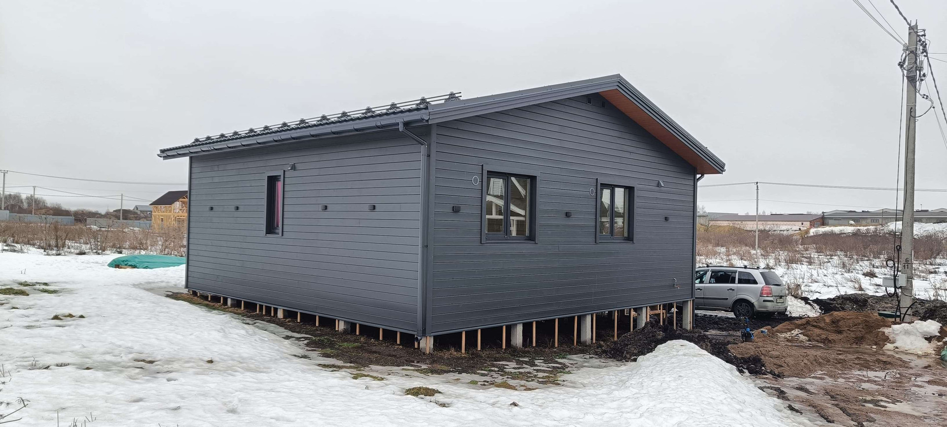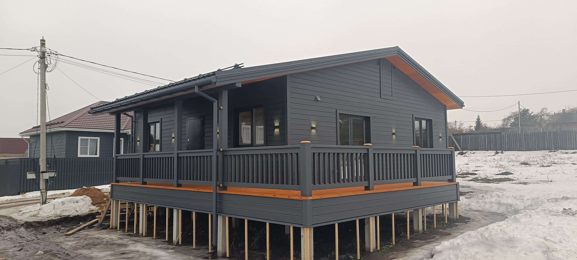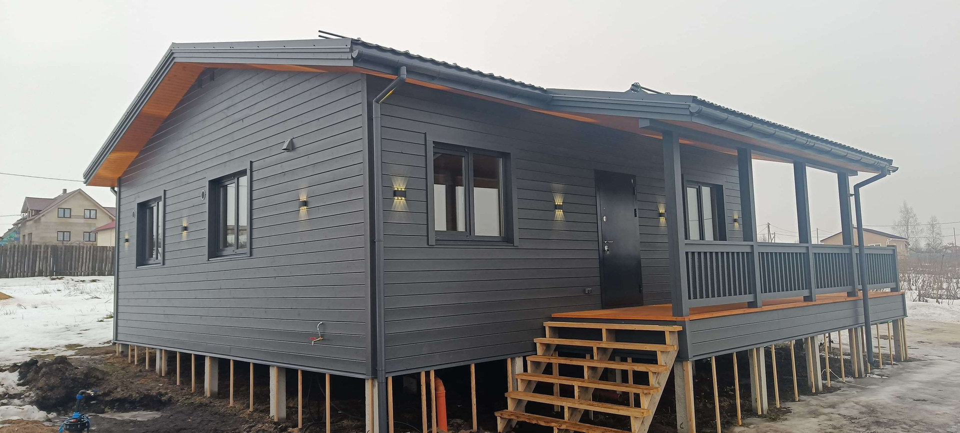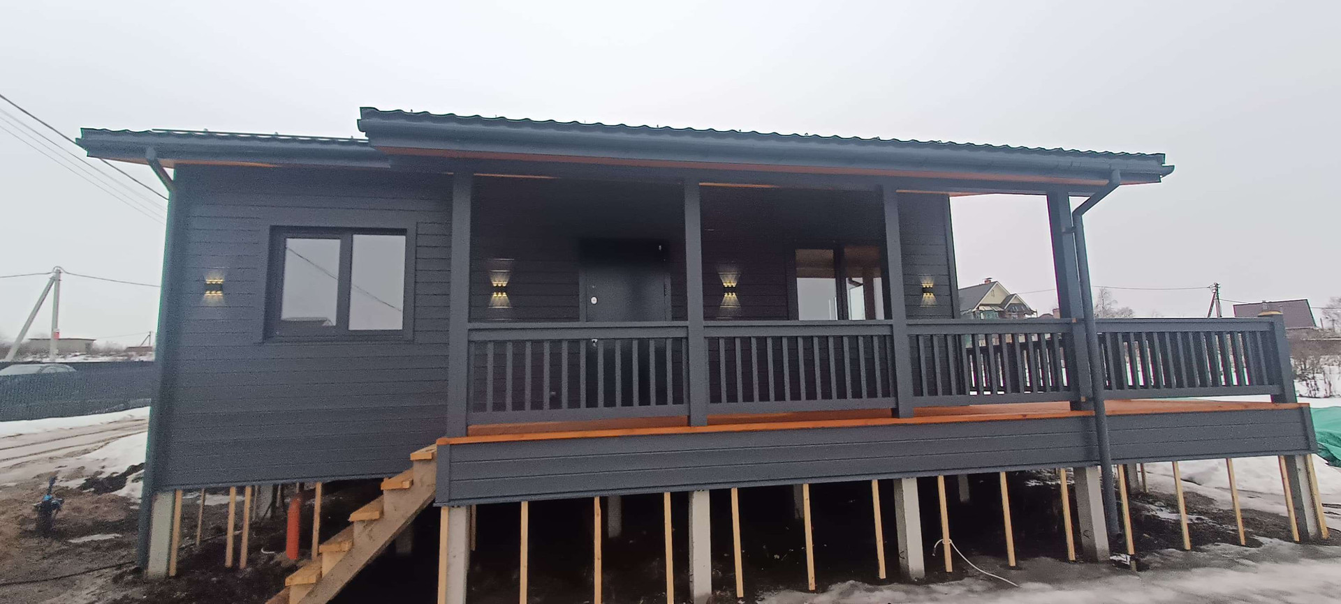 ✔️Фасад: имитация бруса карельский профиль 18*140мм, предварительно окрашенная на производстве укрывным составом, цвет серый графит-ral7024.