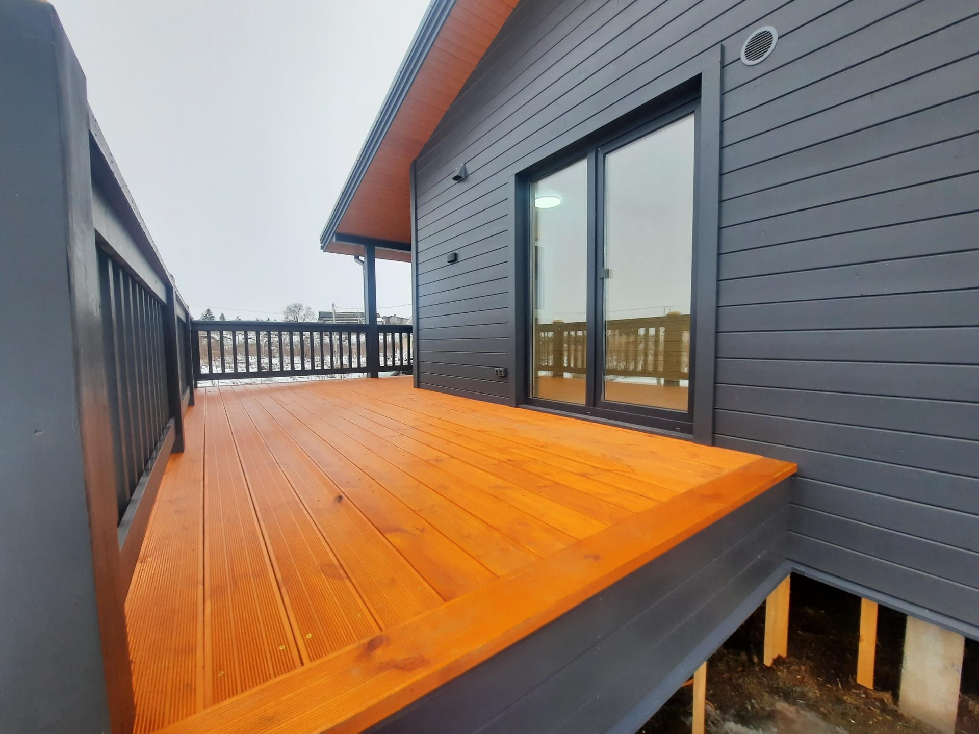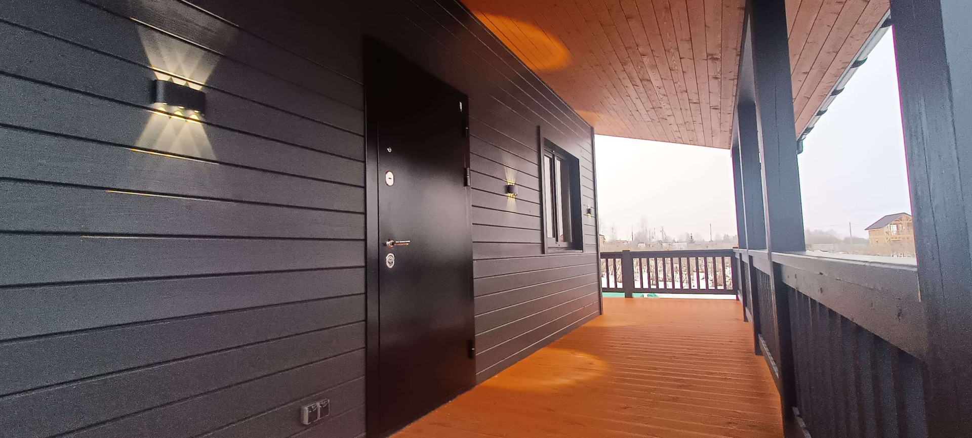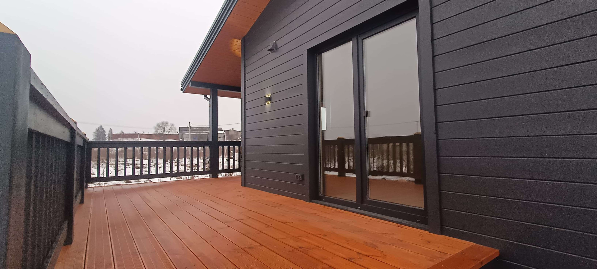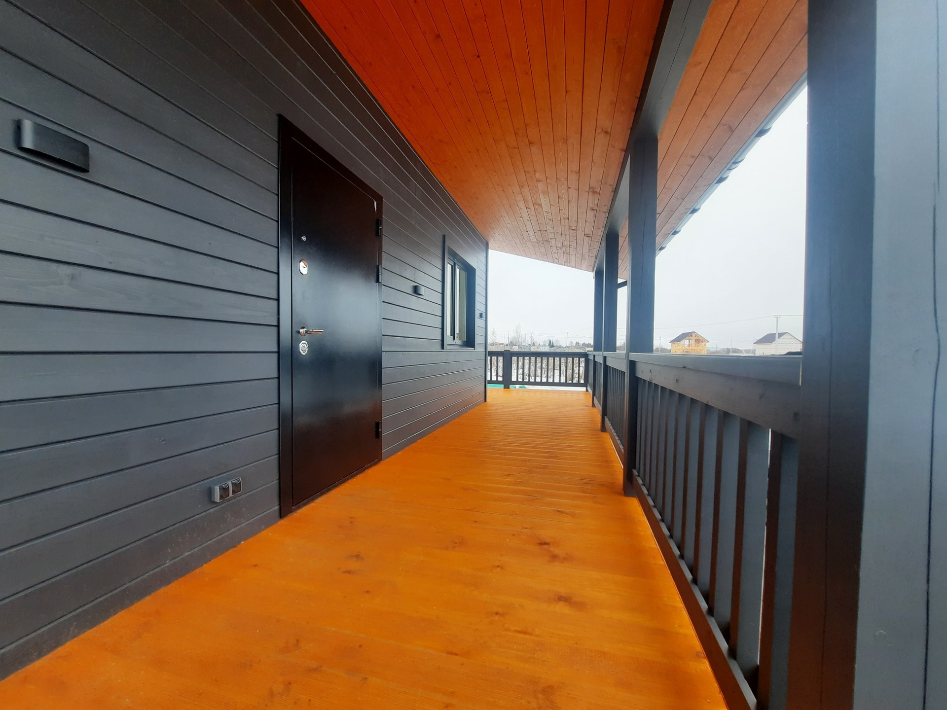 ✔️Подшив потолка терассы и карнизных свесов сухой строганной доской 20*95мм, предварительно окрашенной на производстве лессирующими составами, цвет А-7965.
