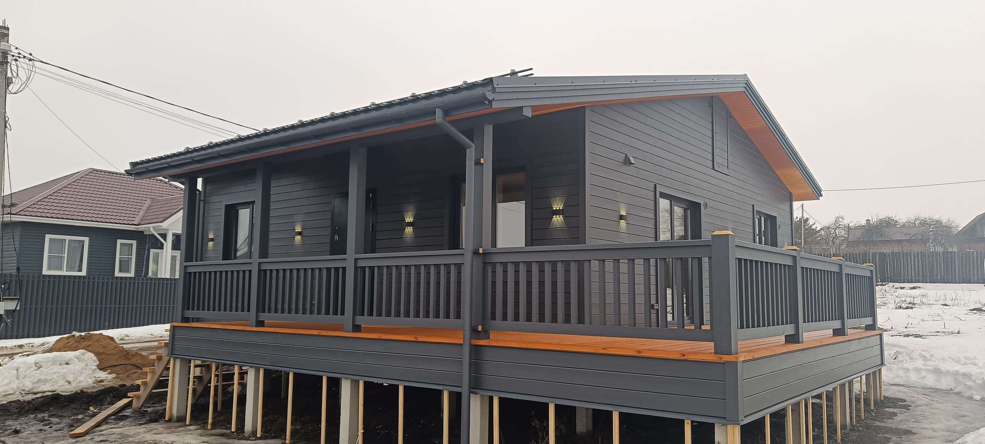 ✔️Освещение внутри-светодиодные люстры, снаружи светодиодные бра.
