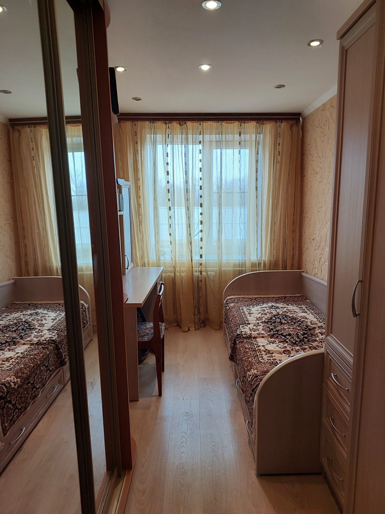 Пластиковые окна, на полу ламинат, межкомнатные двери в одной цветовой гамме.