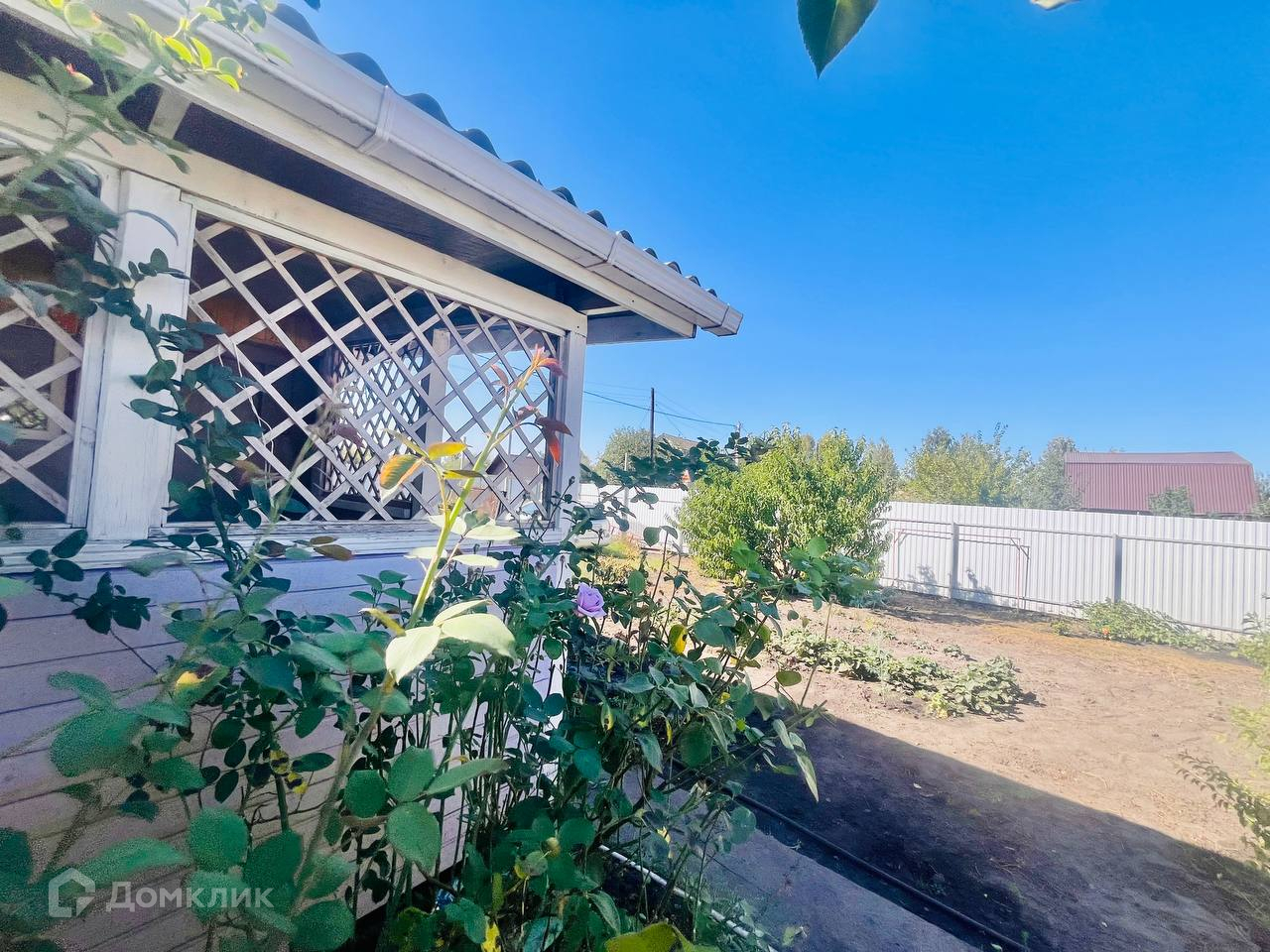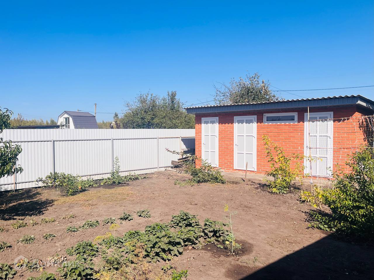 Участок 5 соток, ухожен и облагорожен,  имеются  плодовые деревья и кустарники, цветы. По всему периметру сделано металлическое ограждение, имеются раздвижные ворота для въезда автомобиля. На участке имеются капитальные современные кирпичные строения: туалет и два подсобных помещения, год постройки - 2023.