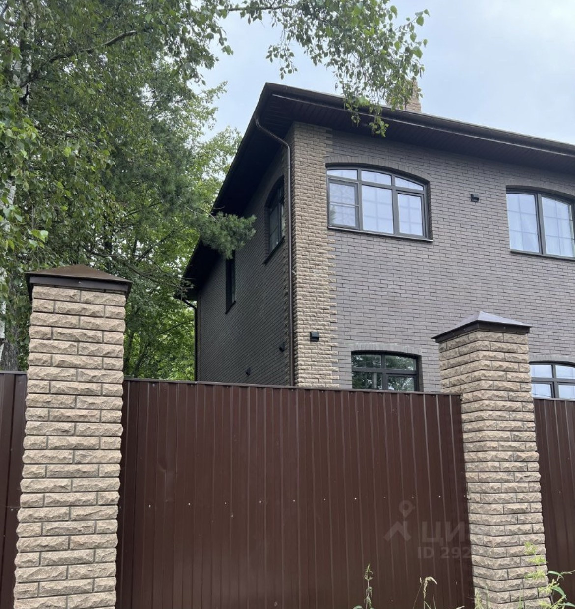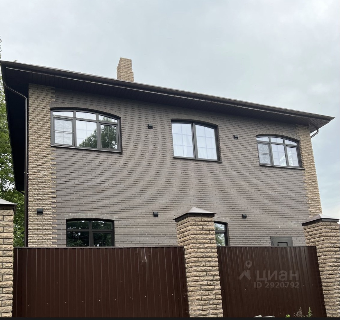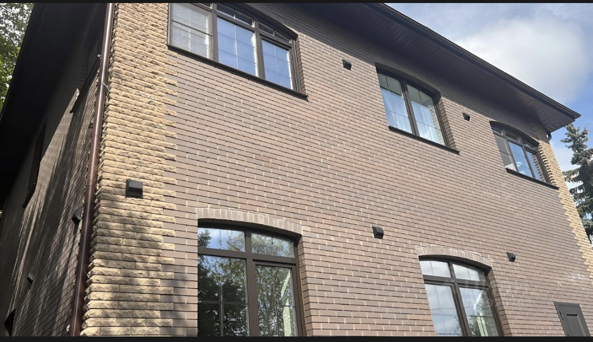 Новый кирпичный дом в европейском стиле.