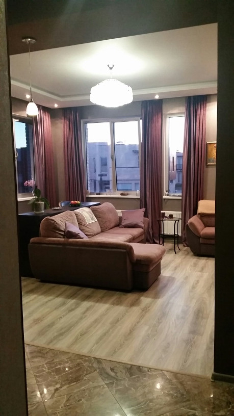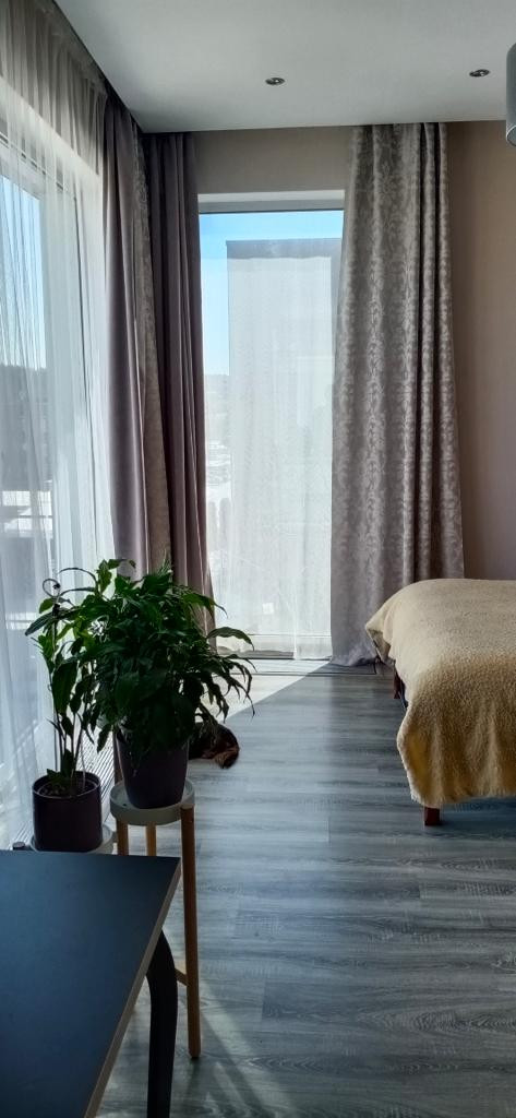 Таунхаус с хорошим ремонтом и отдельным входом. Удобная планировка: две спальни и просторная кухня-гостиная, два санузла, один с большой ванной 2 метра и окном, и второй гостевой.  панорамное остекление, балкон. Встроенная кухня со всей необходимой бытовой техникой, кондиционер, функциональные шкафы купе на 1 и 2 этаже остаются новому владельцу.