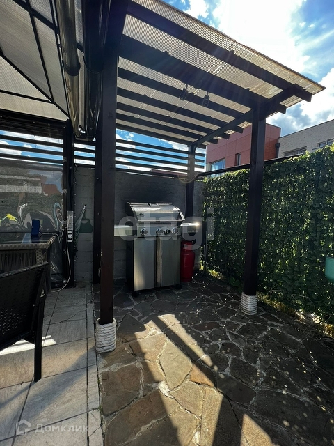 В вашем распоряжении благоустроенный задний двор с беседкой, хвойные и фруктовые деревья, сарай для хранения садового инвентаря и колясочная!