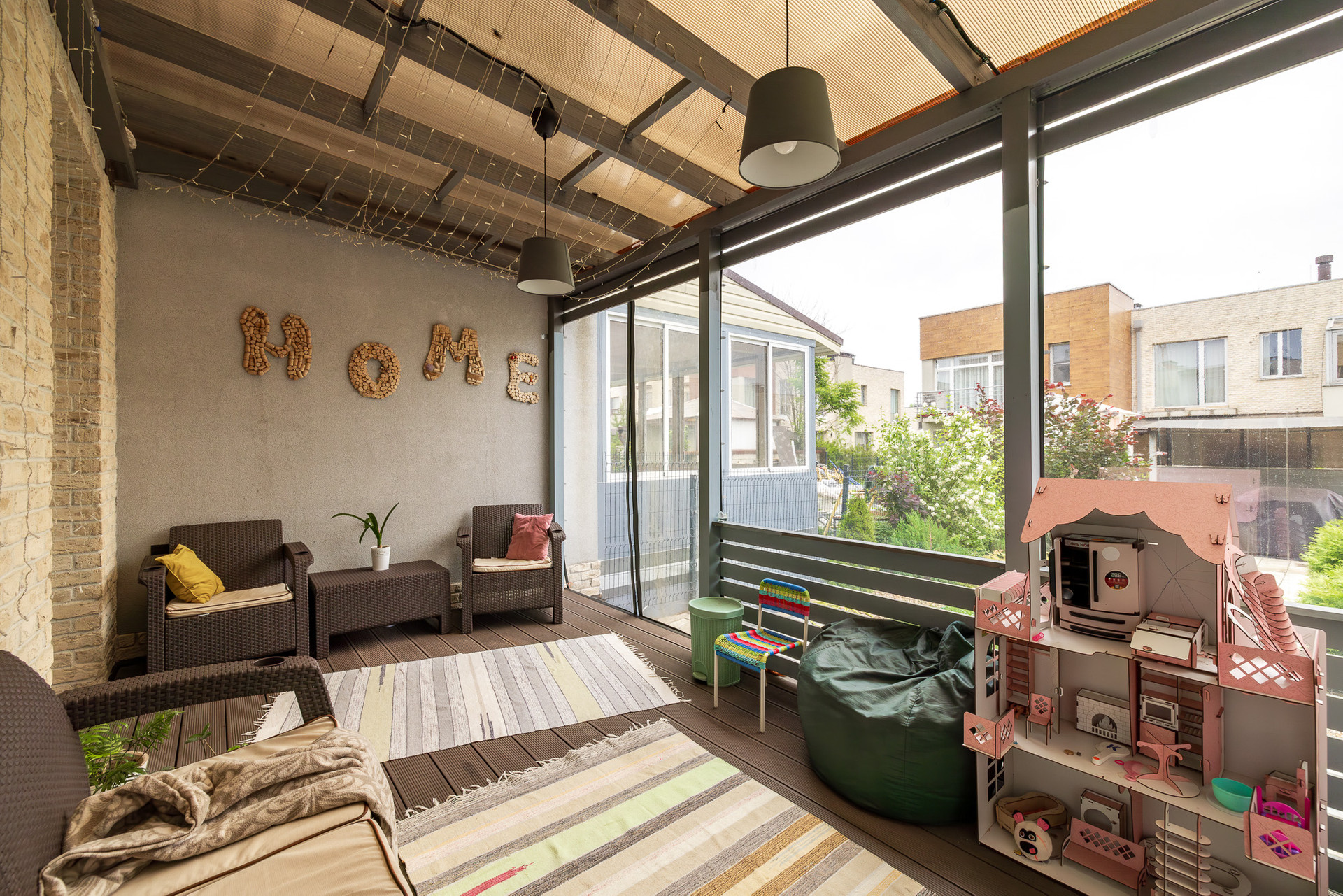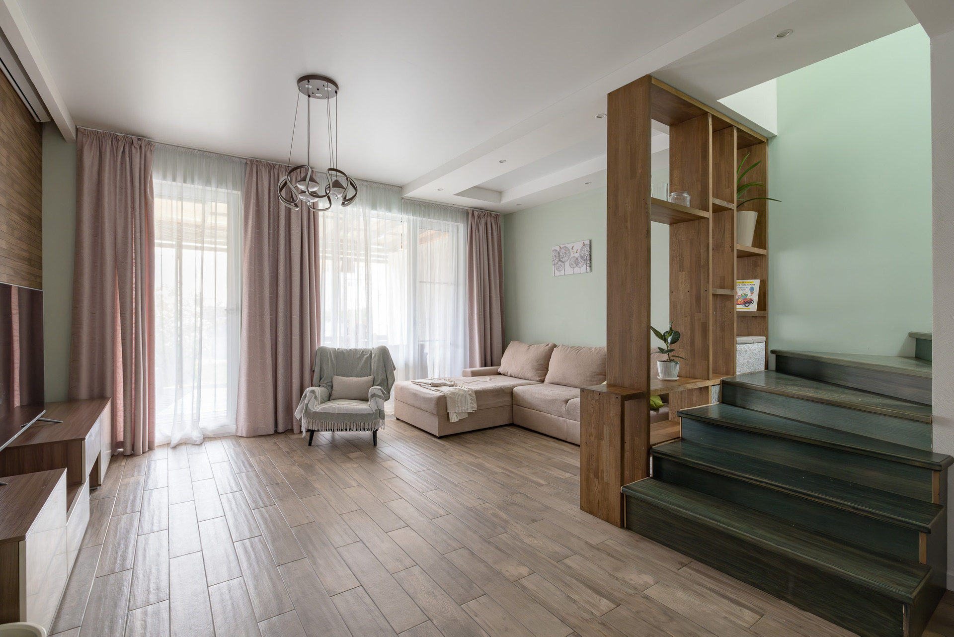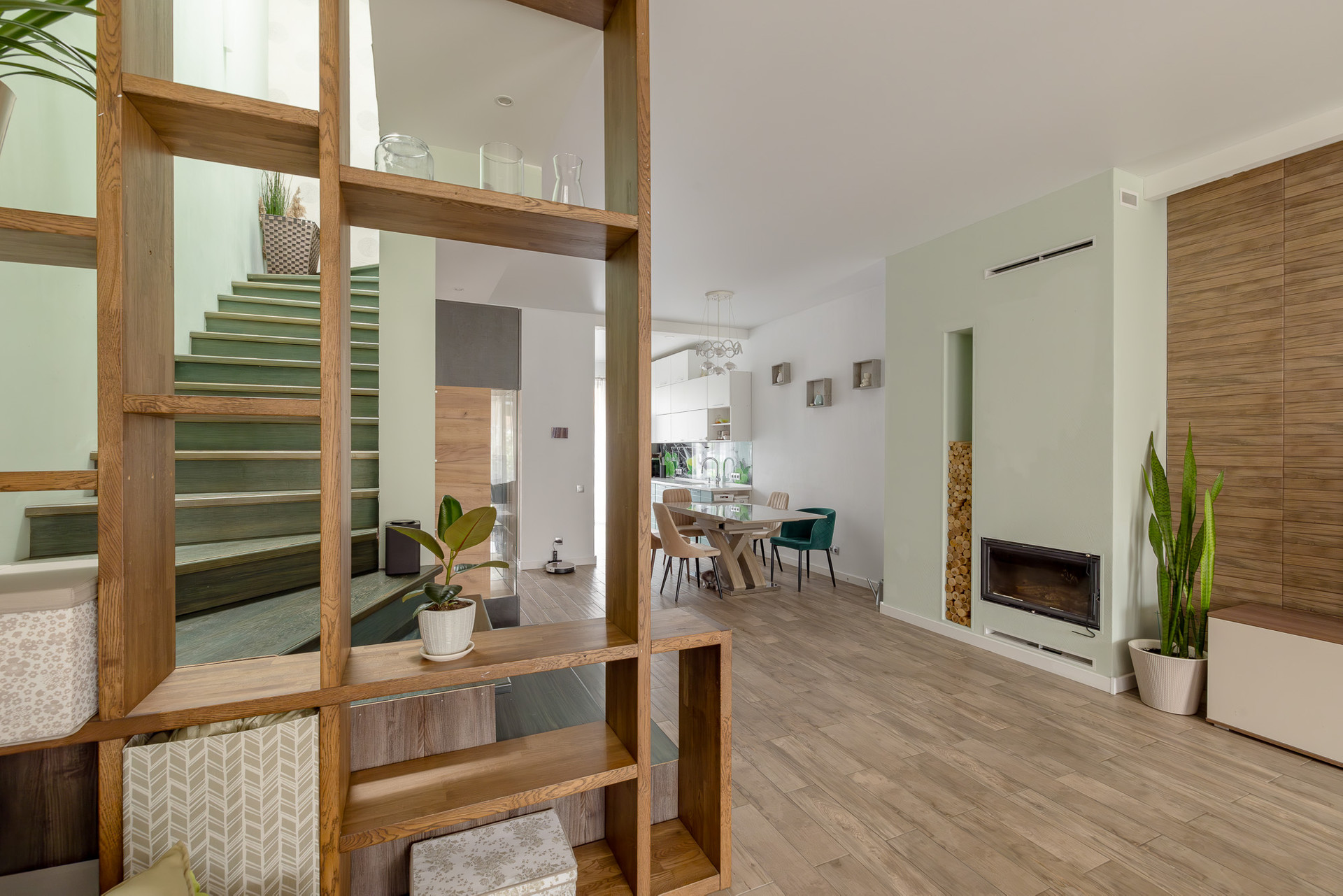 На первом этаже вас ждет просторная и уютная кухня-гостиная с панорамными окнами, выходом на террасу и внутренний дворик. Здесь также расположены санузел, веранда и прихожая.