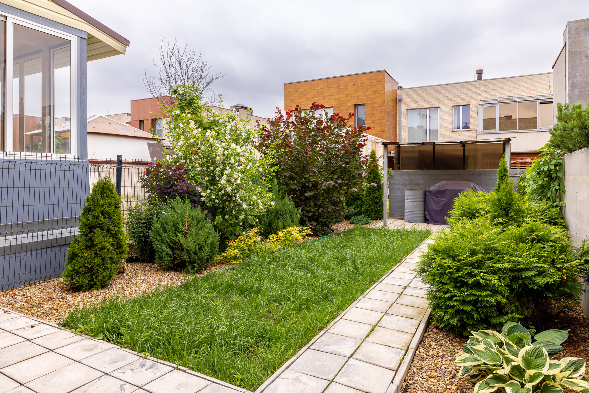 Это дом с собственным приватным внутренним двориком и двумя закрепленными машиноместами.