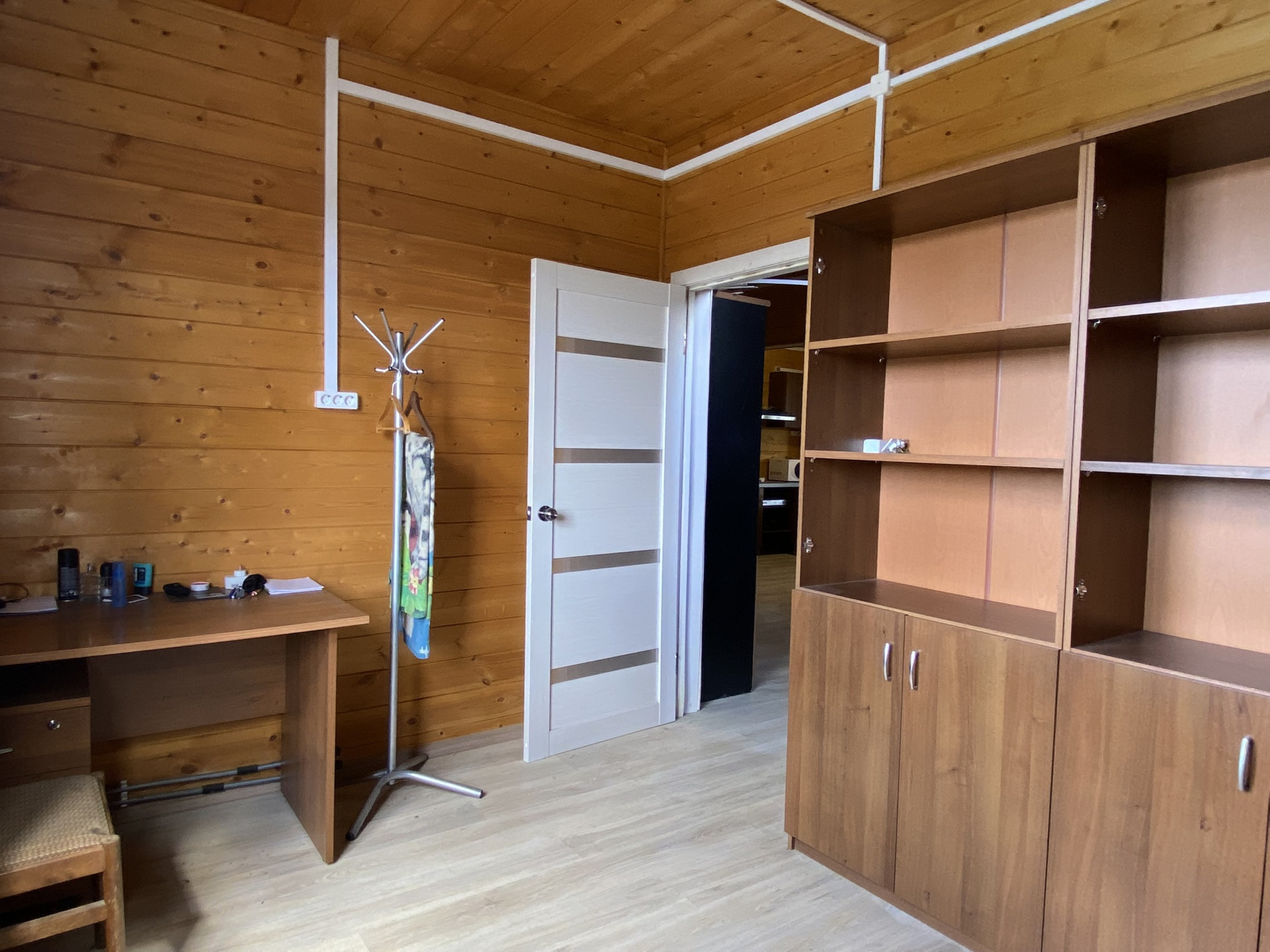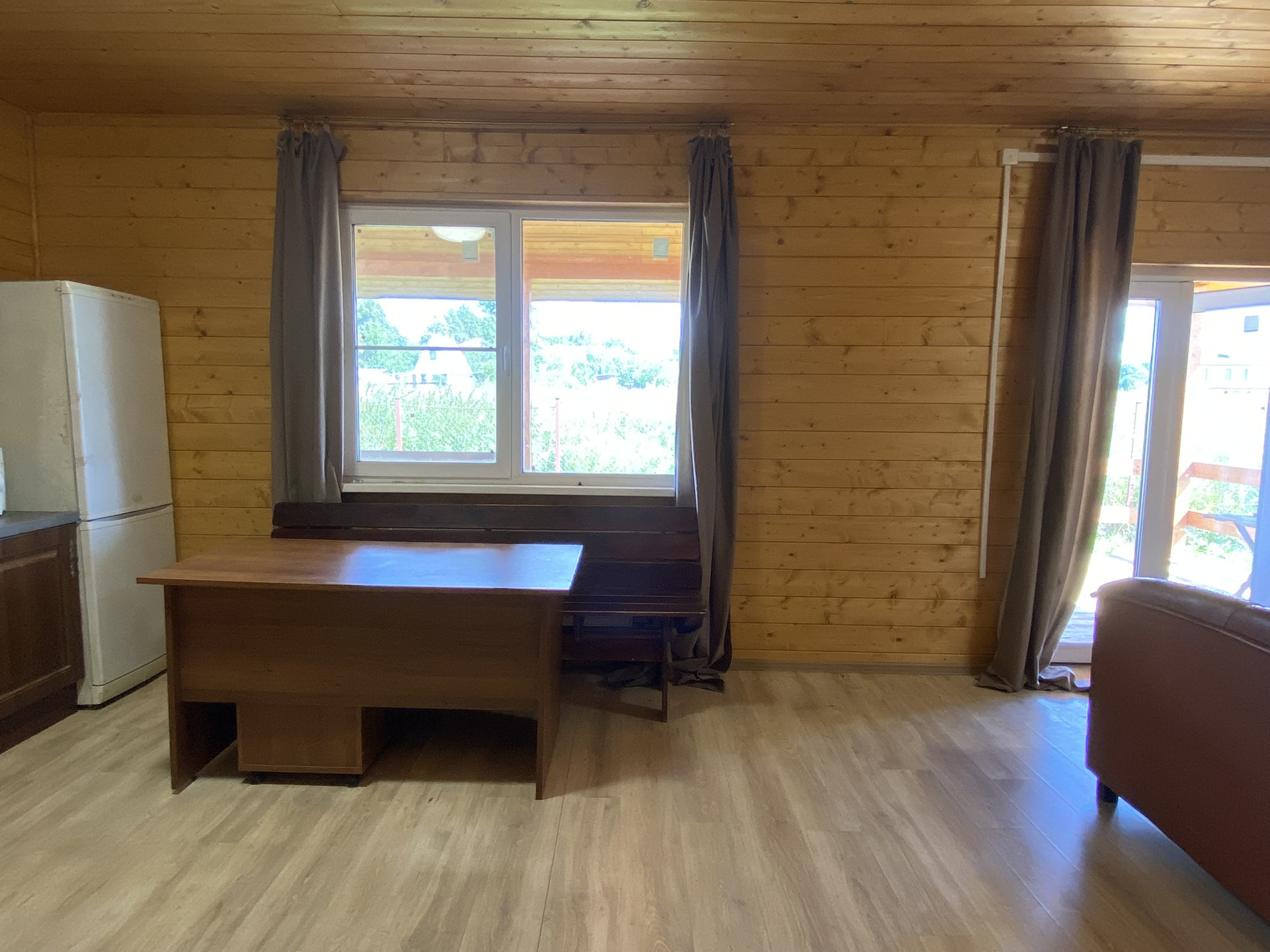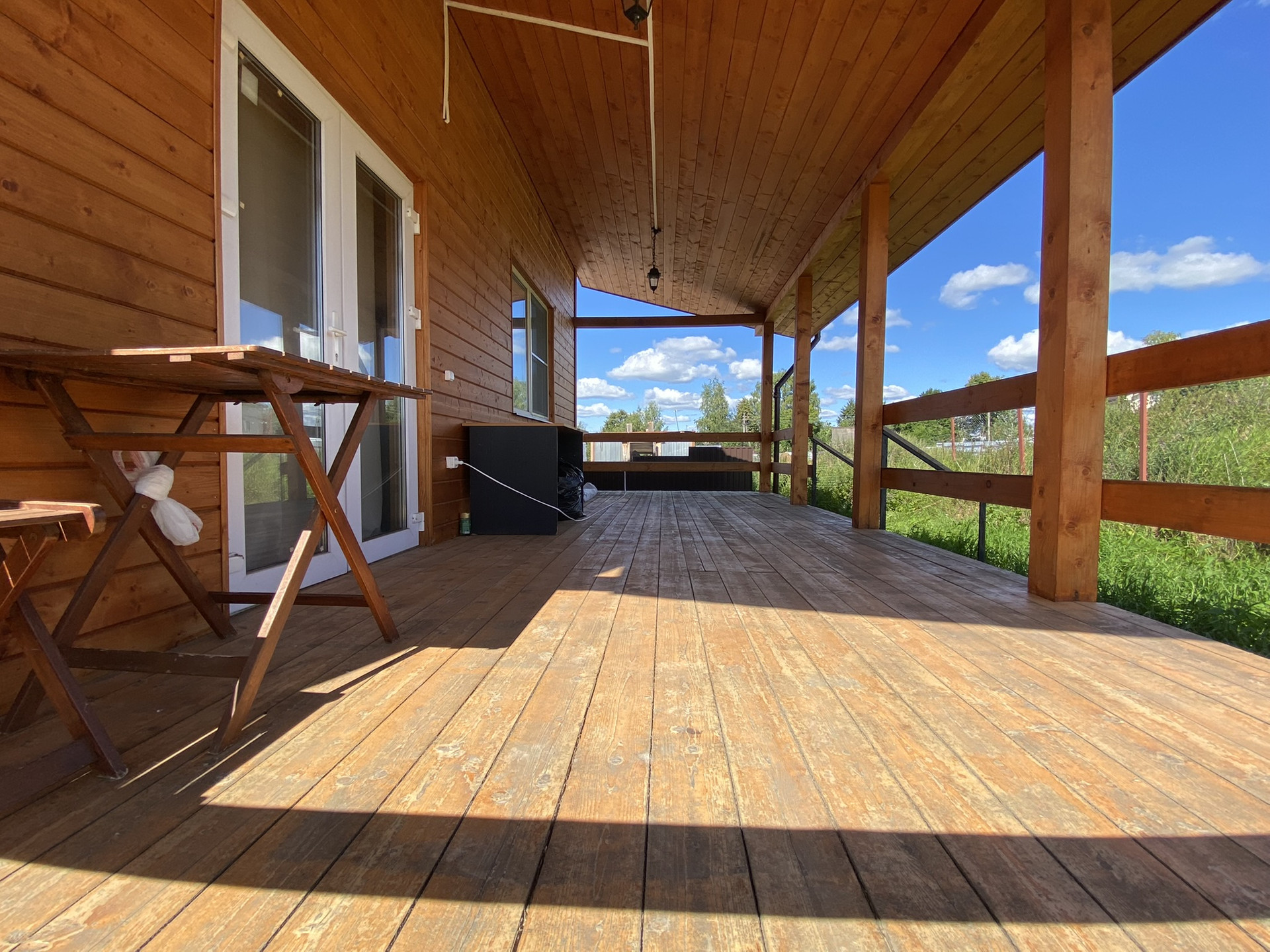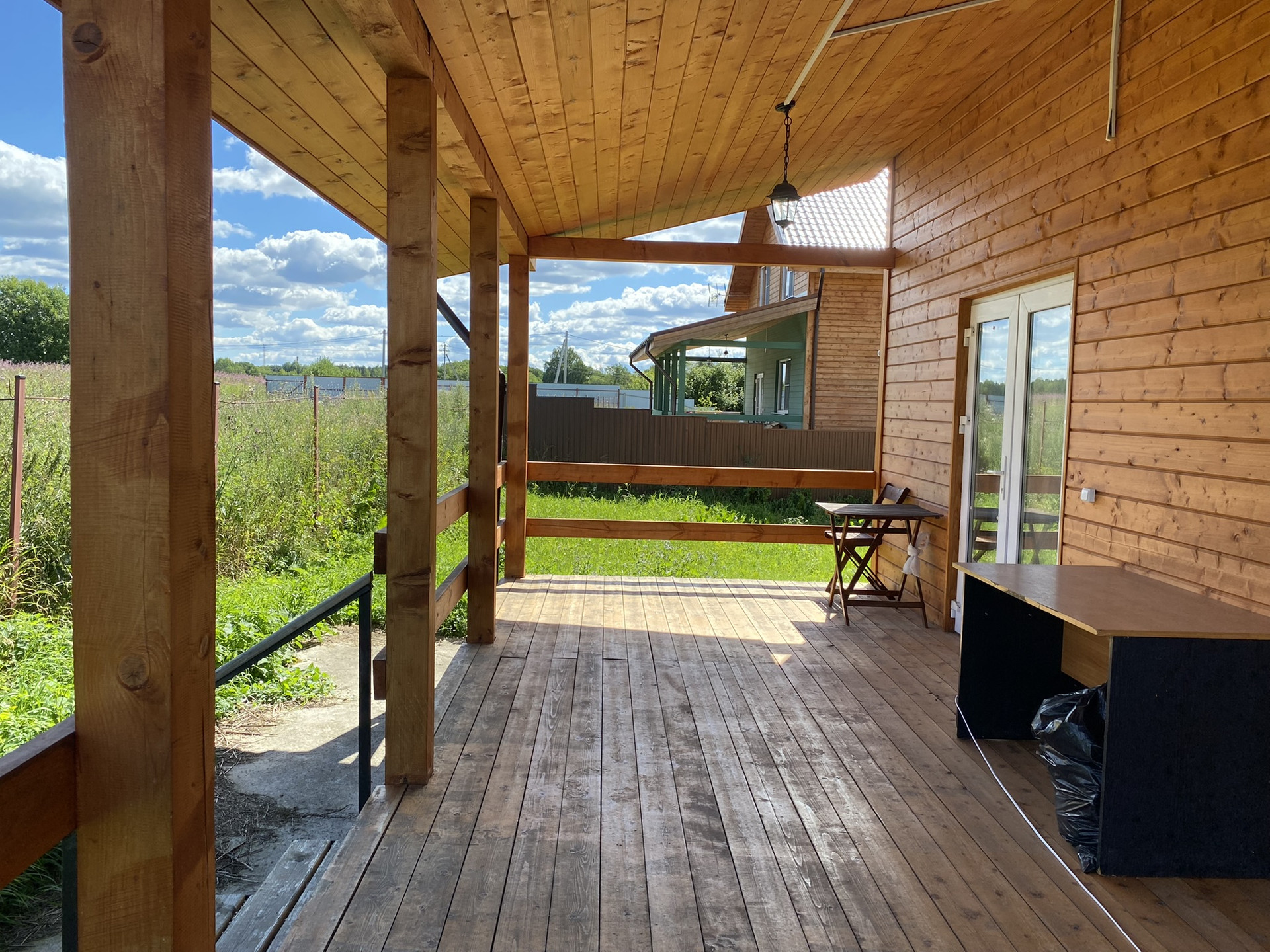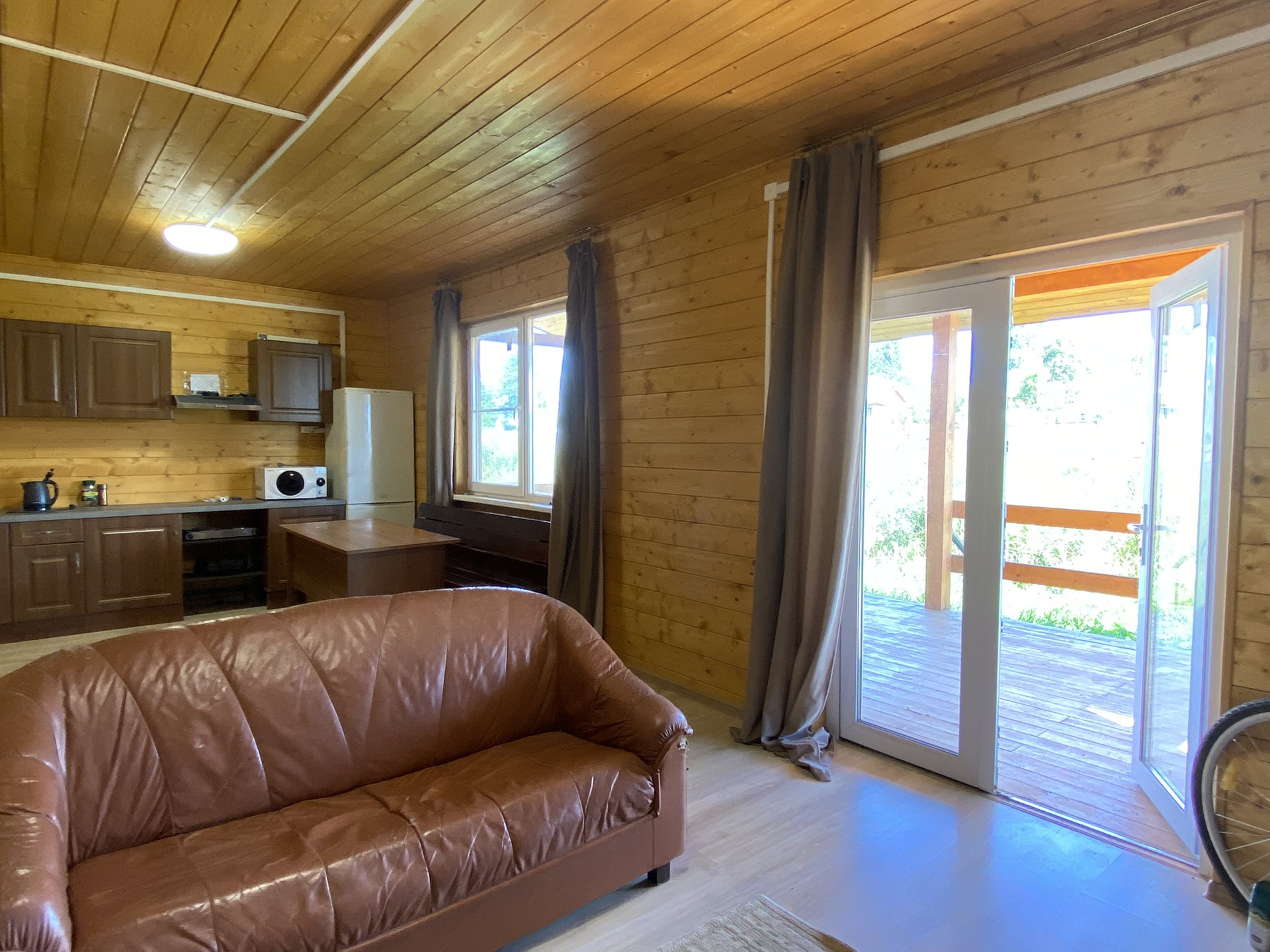 1 этаж – комната гостевая(10,8м), кухня-гостиная(28,3м), сан/узел и душевая. Крытая веранда (23м) с выходом на обратную сторону дома.