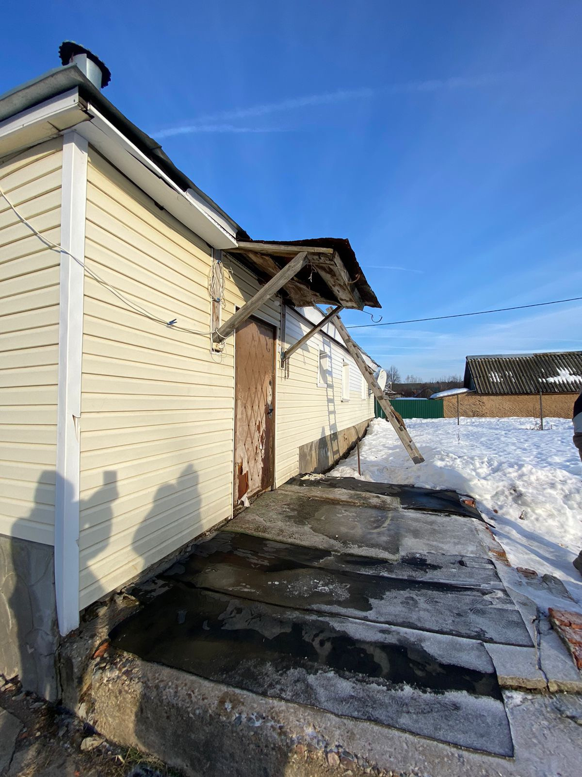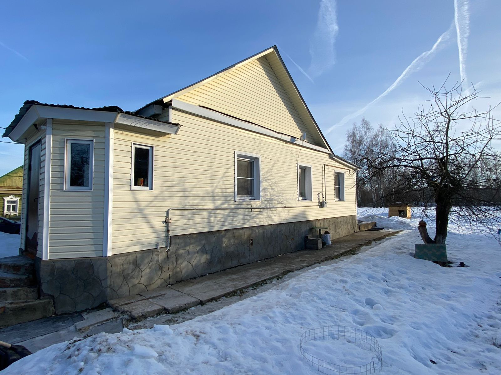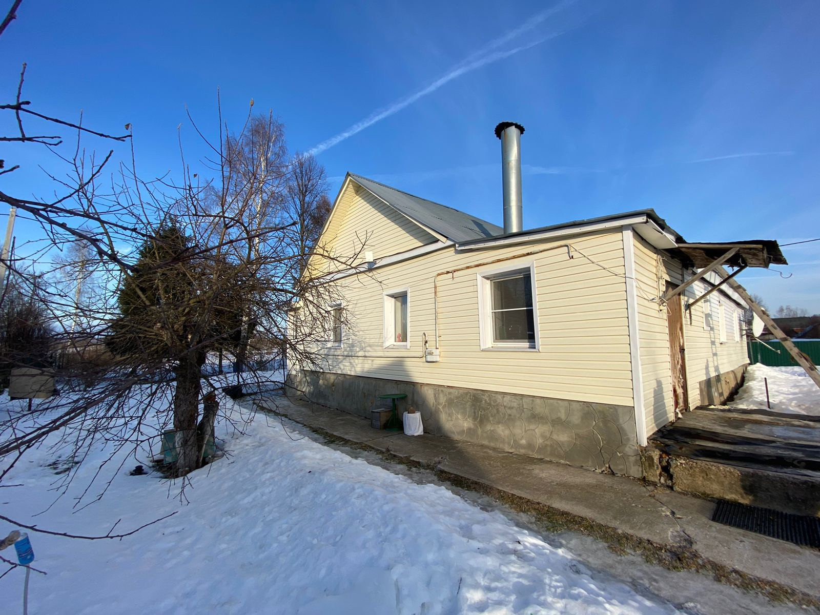 Дом стоит на крепком фундаменте. Изначально был деревянный, затем полностью обложили кирпичом и обшили снаружи сайдингом. За домом можно пристроить террасу или сделать навес.
