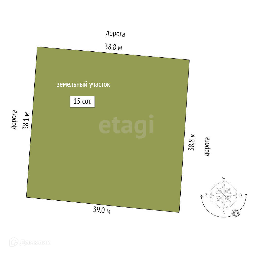 Площадь участка 15 сот.