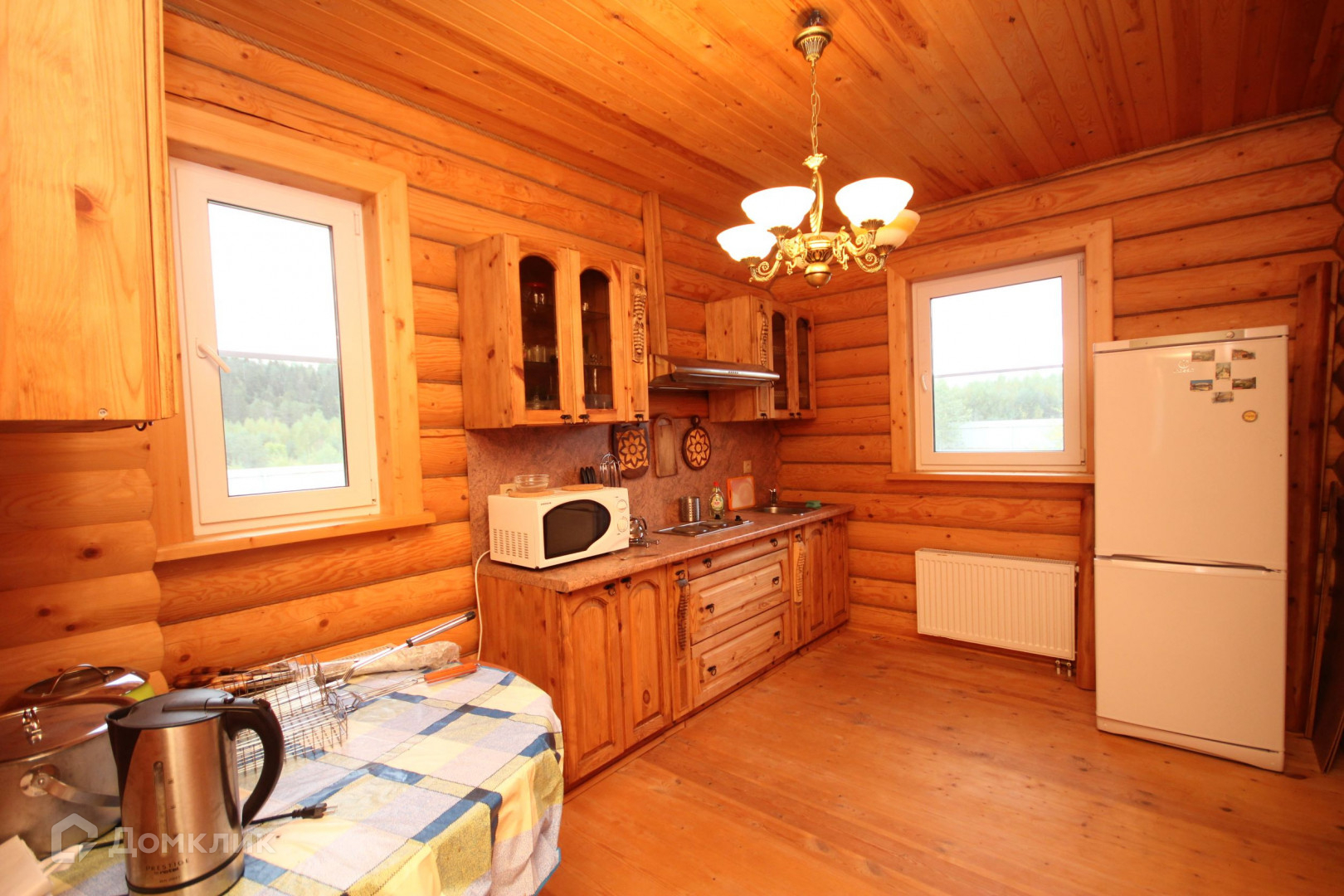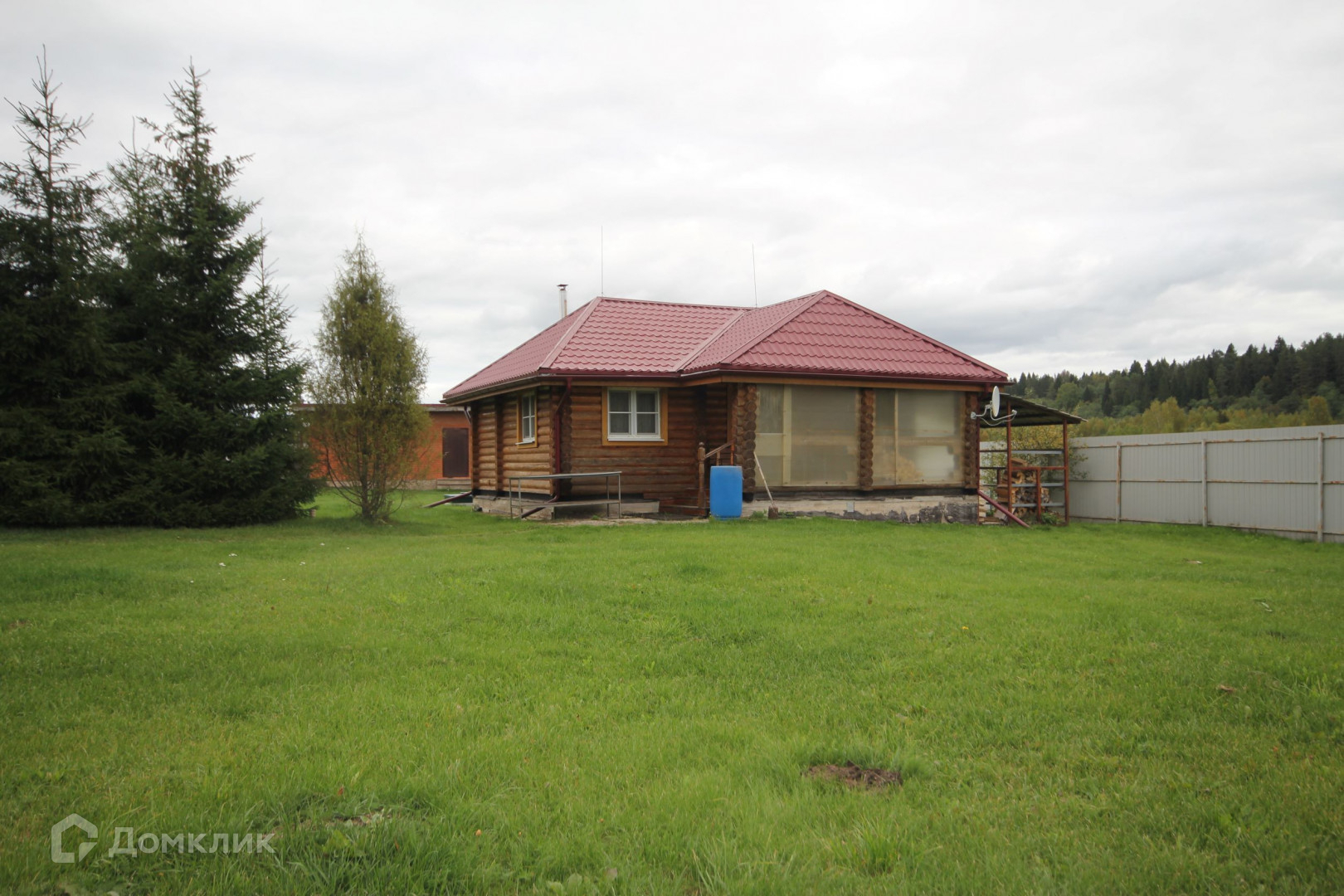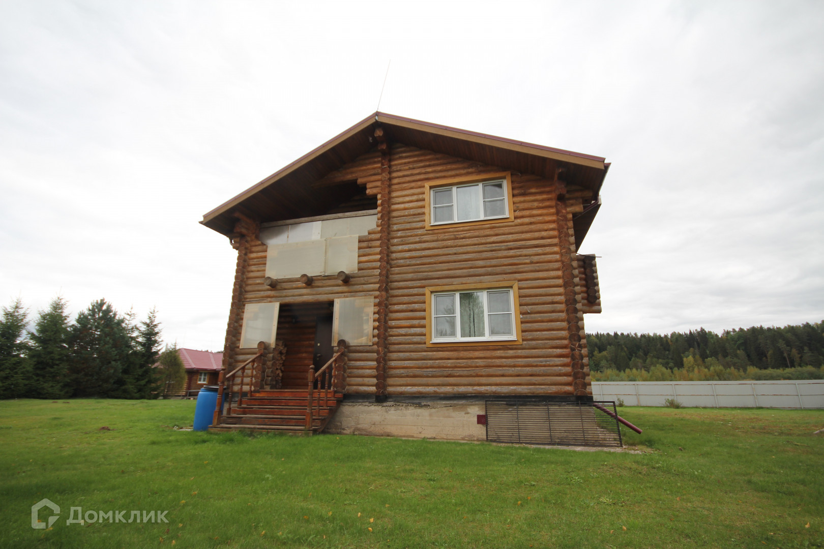 Жилой дом, гостевой дом и баня выполнены из цельного рубленого бревна, построены в 2011 году.