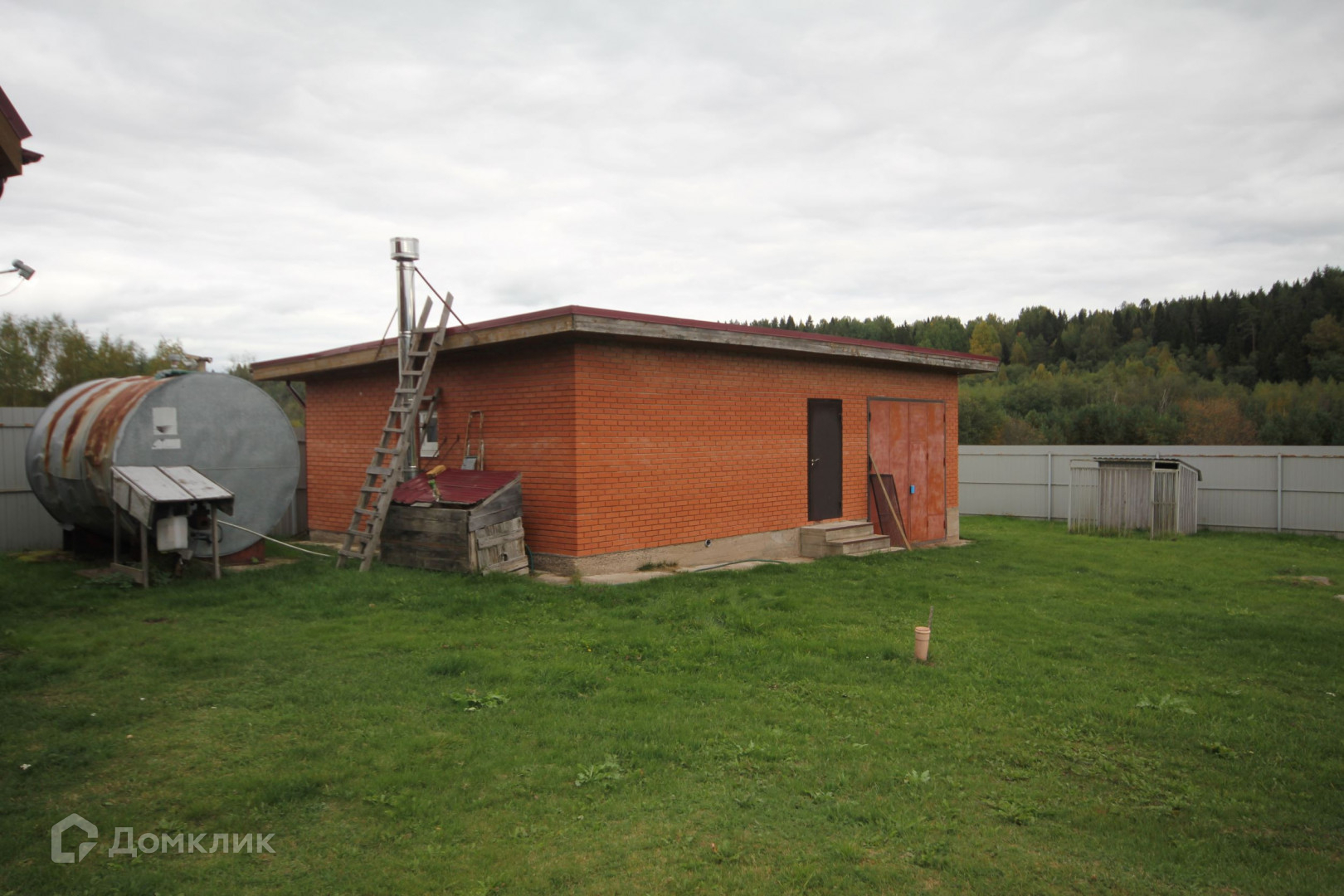 Гараж и помещение для охраны построены из кирпича в 2013 году.
