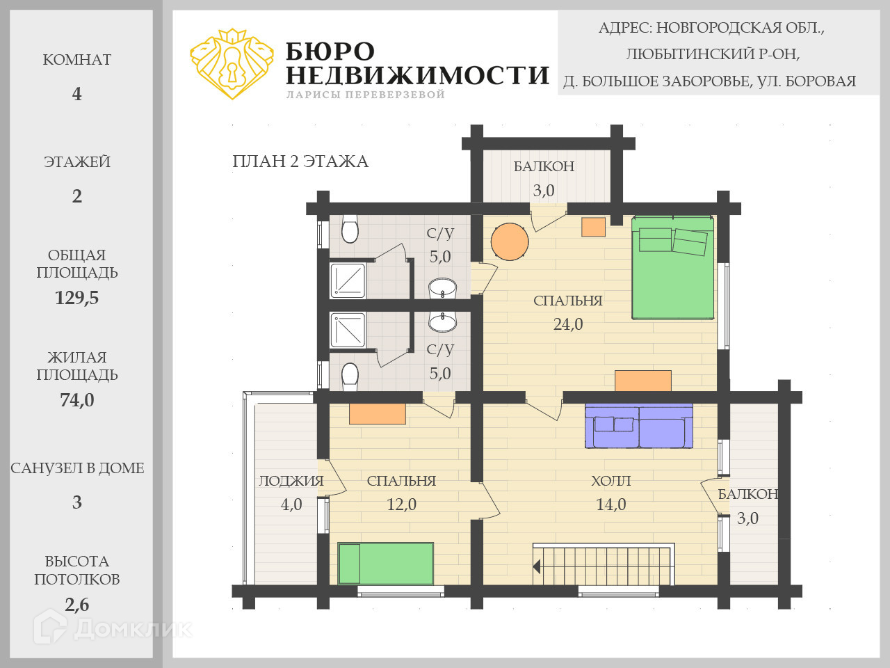 Общая площадь 129.5 м2
