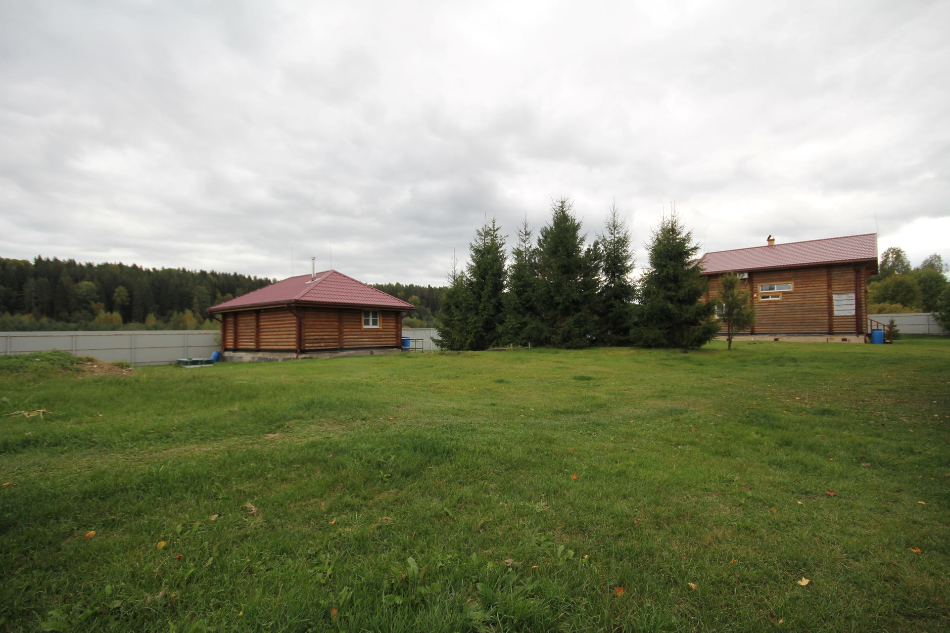 Жилой дом, гостевой дом и баня выполнены из цельного рубленого бревна, построены в 2011 году.