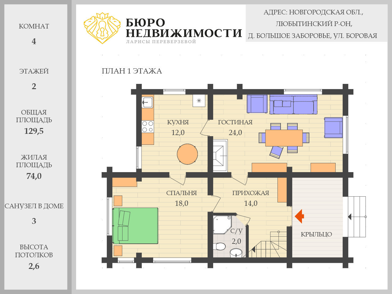 Общая площадь 129.5 м2