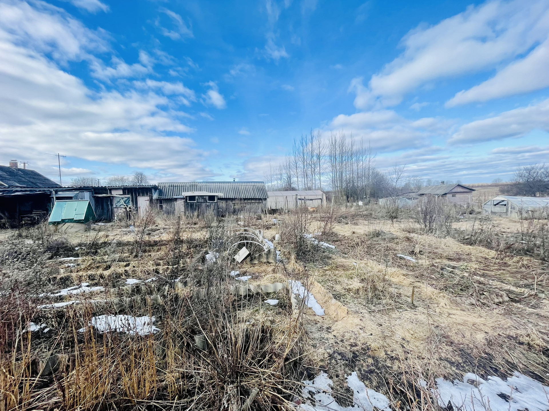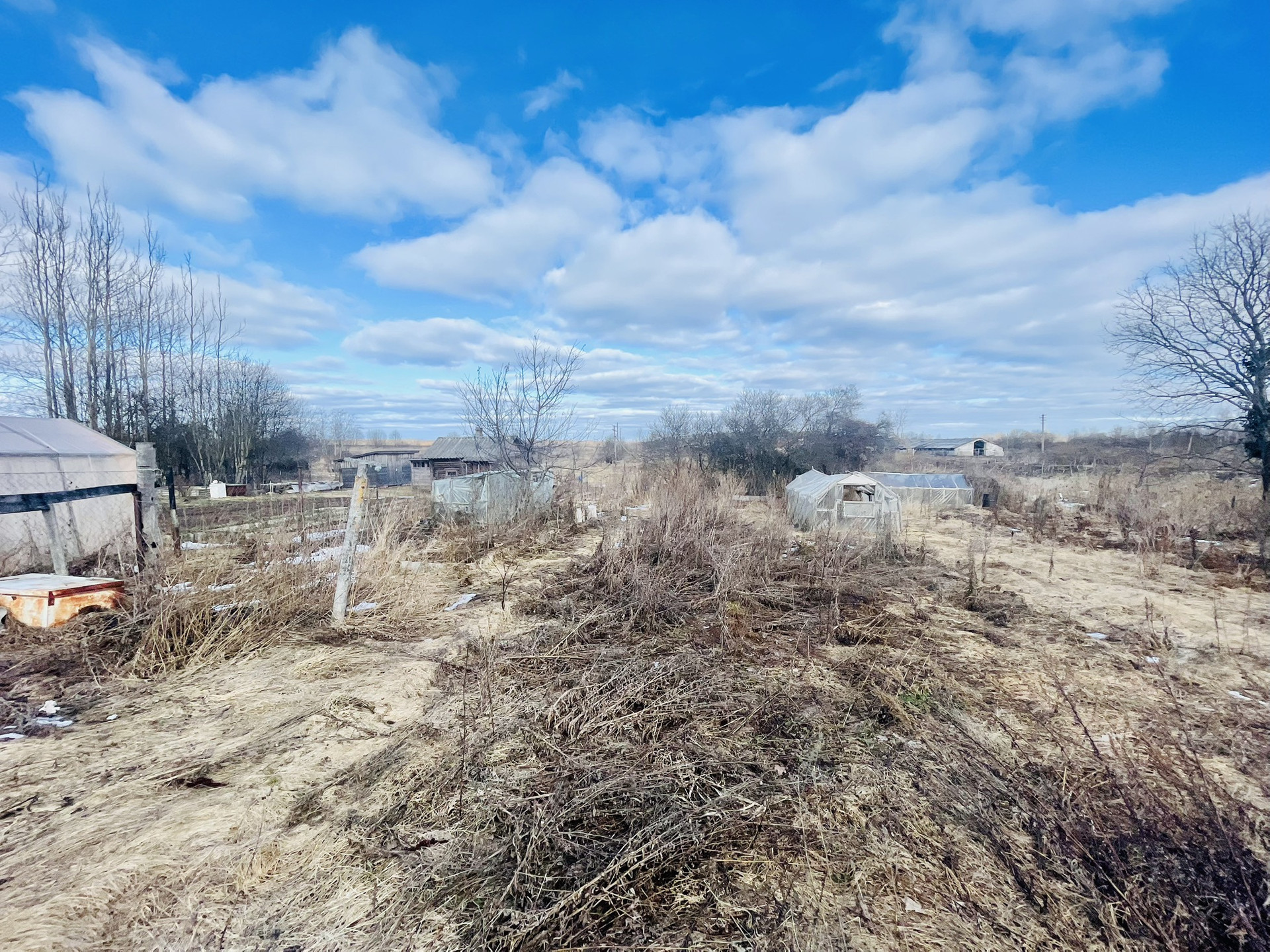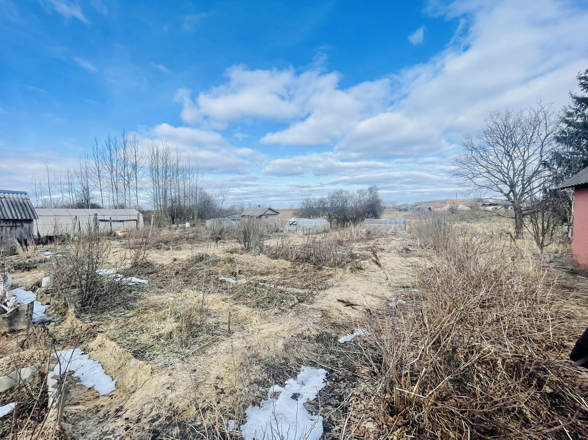 На участке множество плодовых деревьев и ягодных кустарников, парники, грядки, земля обрабатывалась на постоянной основе. Летний гостевой домик, баня, хозяйственные постройки, все в хорошем состоянии. В конце участка протекает р. Крутец, воды в ней много как летом, так и зимой.