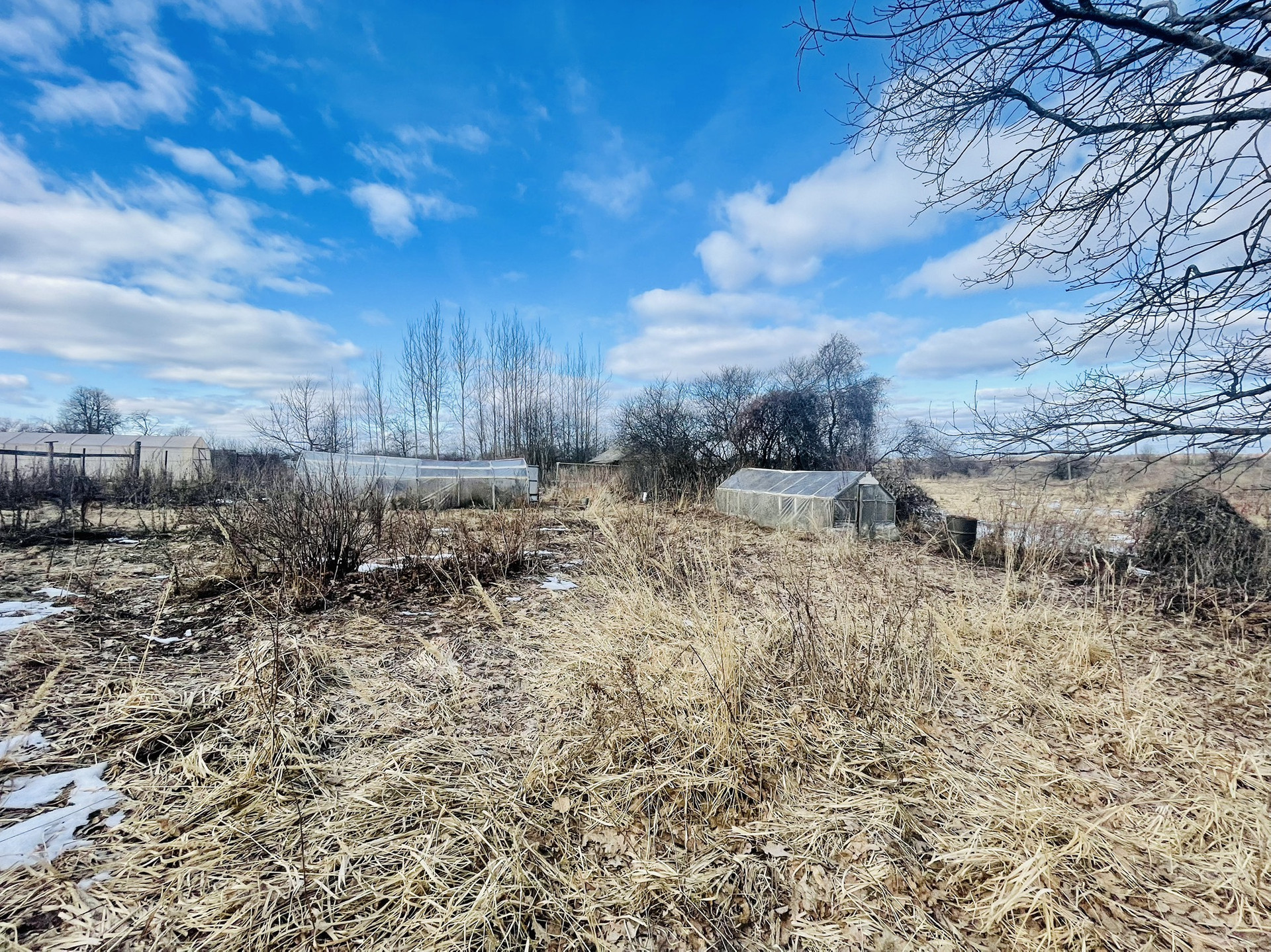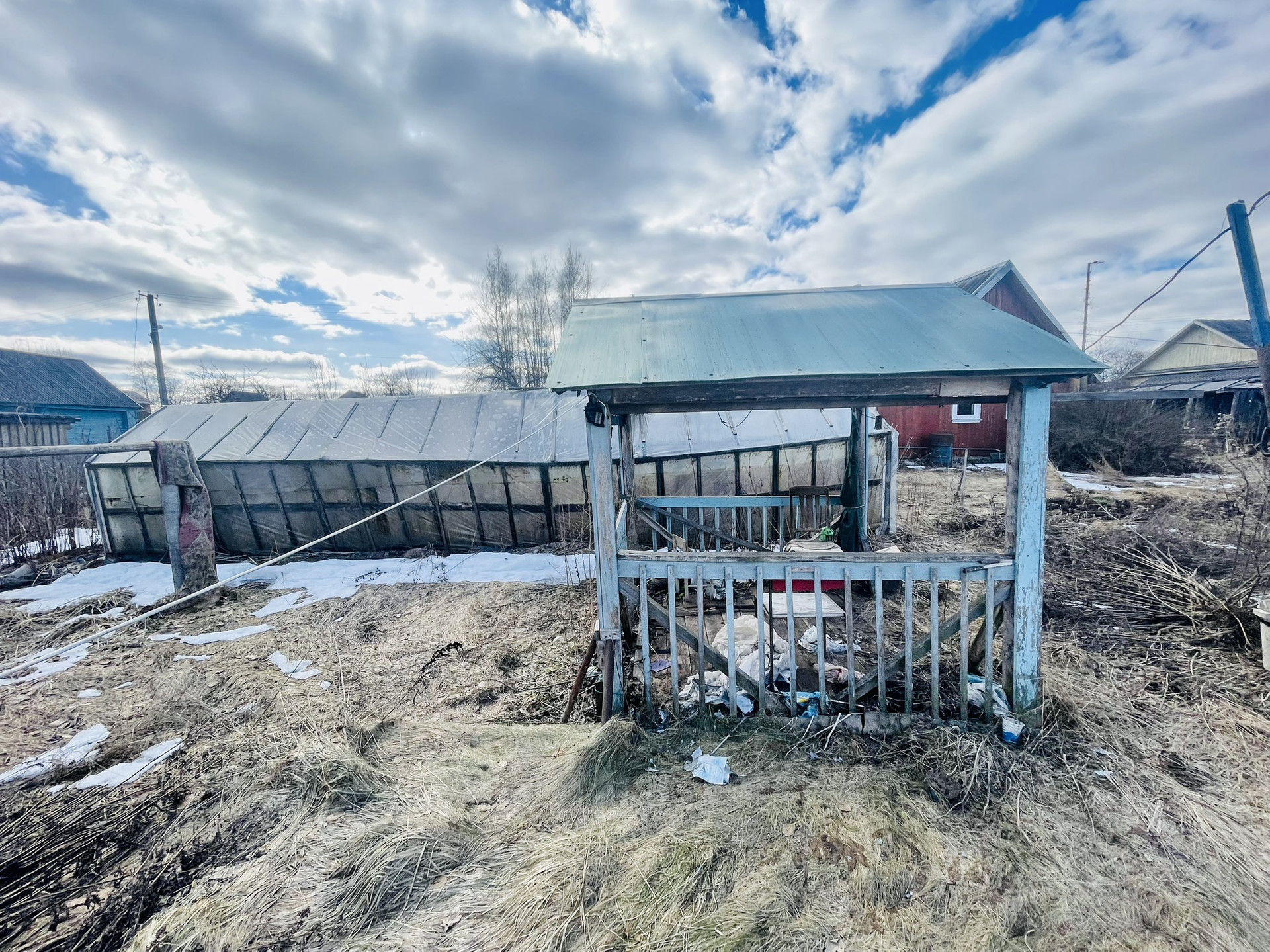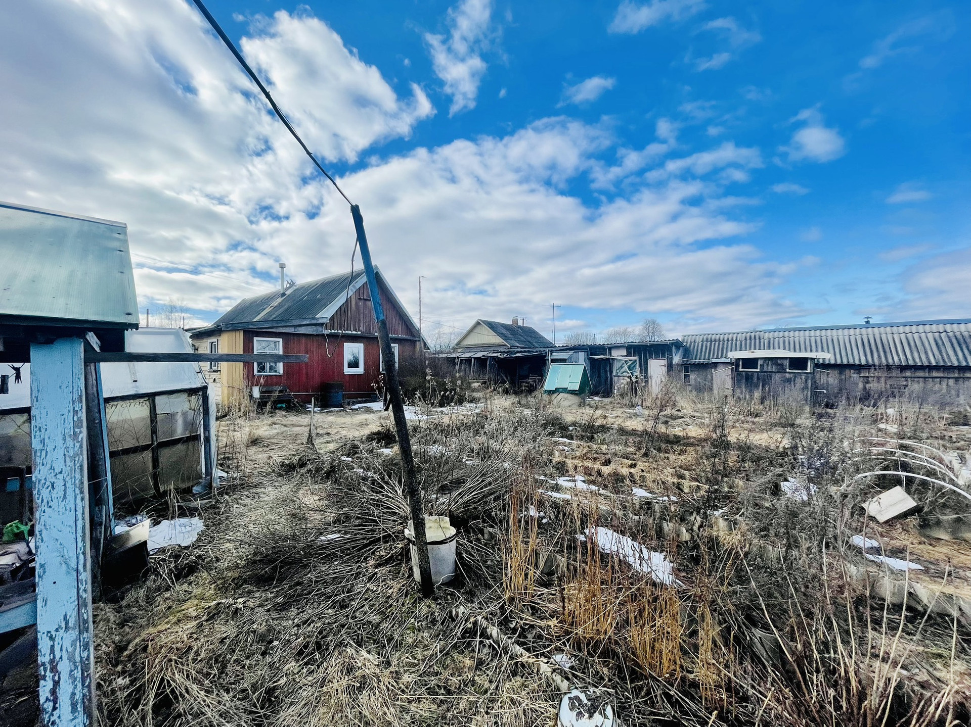 На участке множество плодовых деревьев и ягодных кустарников, парники, грядки, земля обрабатывалась на постоянной основе. Летний гостевой домик, баня, хозяйственные постройки, все в хорошем состоянии. В конце участка протекает р. Крутец, воды в ней много как летом, так и зимой.
