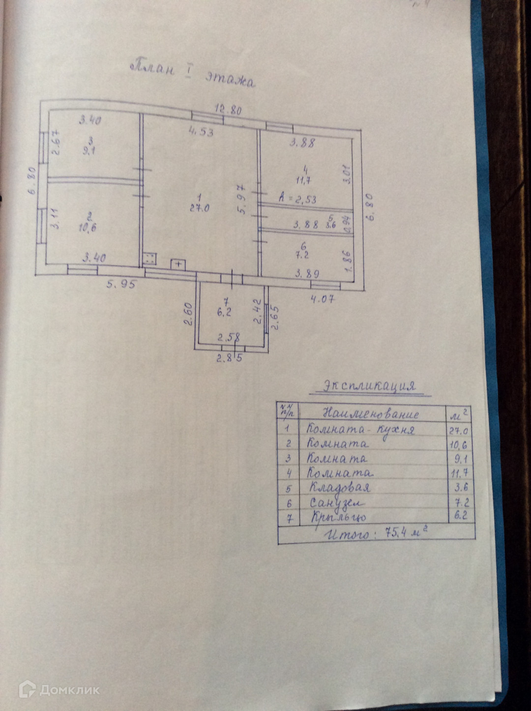 Общая площадь 75.4 м2