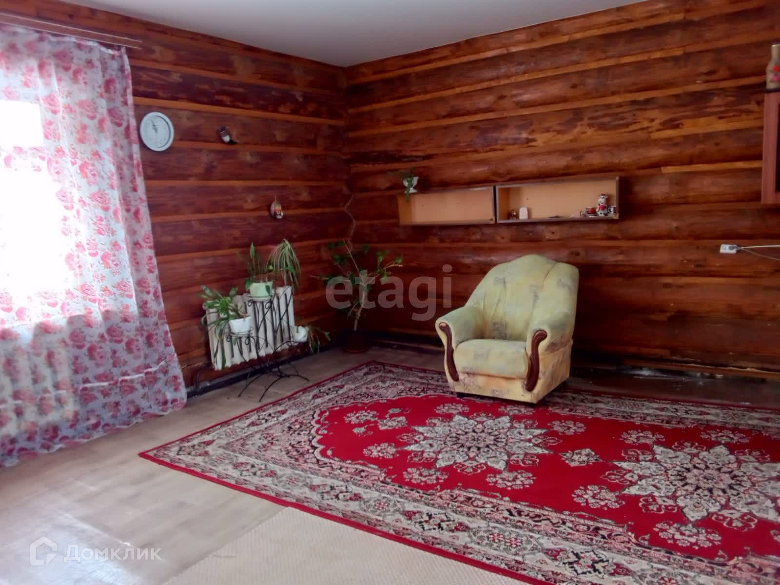 В доме находятся две спальни и кухня-гостиная площадью 39 кв.м. Дом построен из экологически чистого обработанного бревна. Внутренний косметический ремонт выполнен в стиле русского дома, максимально сохранивший природные материалы.