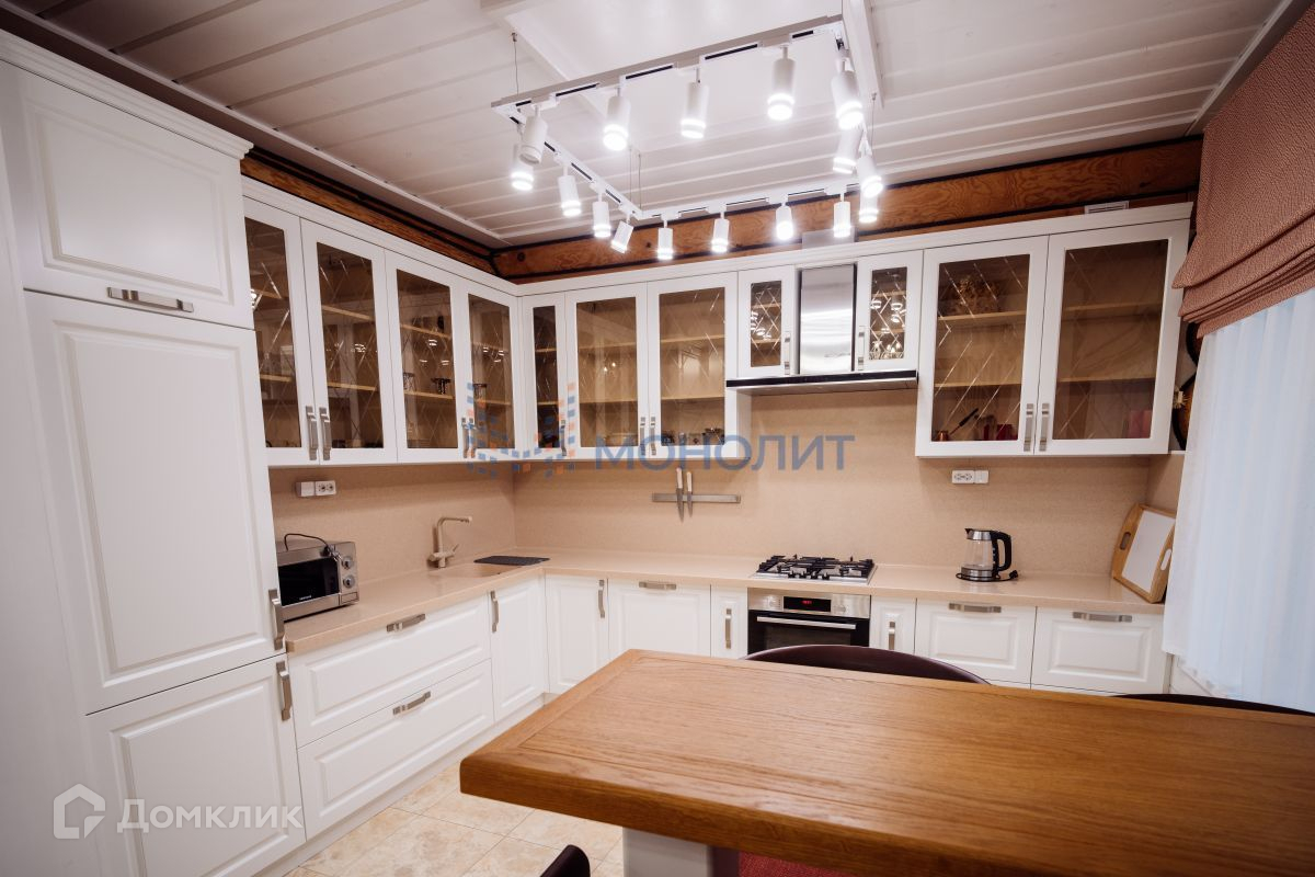 В цокольном этаже расположена комната для персонала, постирочная, гараж, санузел, котельная, подсобные помещения. На первом этаже просторная кухня с обеденной зоной, большая гостиная с камином, терраса, 3 спальные комнаты, гардеробная, санузел, холл, крыльцо. На втором этаже мастер спальня с балконом, большая гардеробная, кабинет, кладовка. В комнатах установлены кондиционеры.