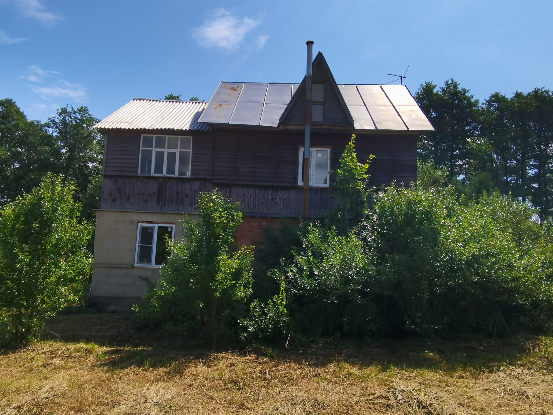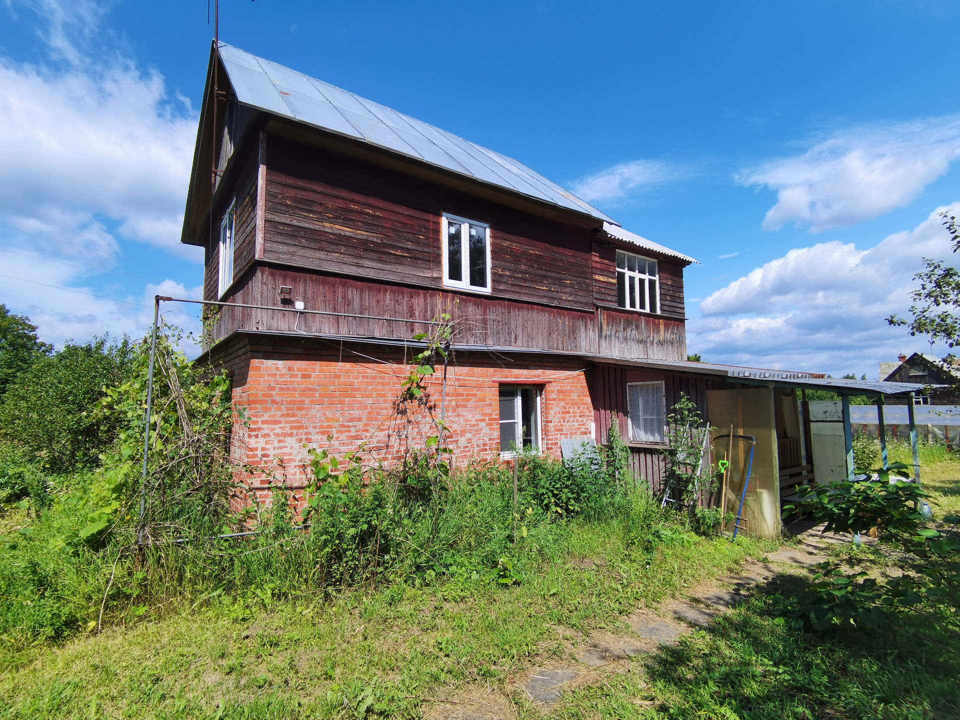 Первый этаж дома выполнен из кирпича, второй каркасный с утеплением.